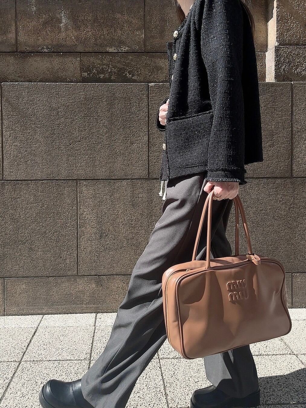 ストリングデザインを見せていただきやすいようにトップスはコンパクトなものや、薄手のトップスをインして着ていただくコーデがおすすめです。