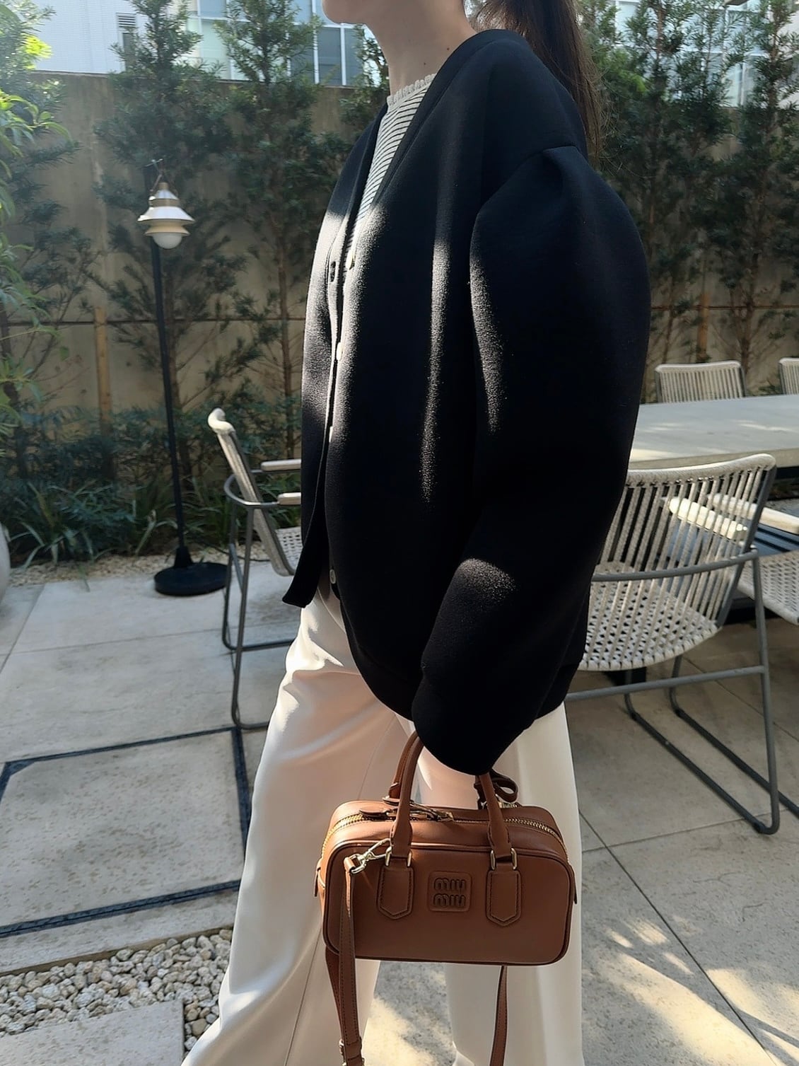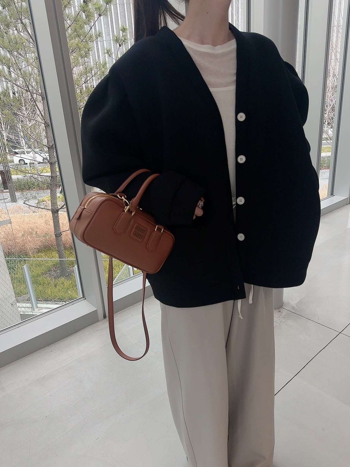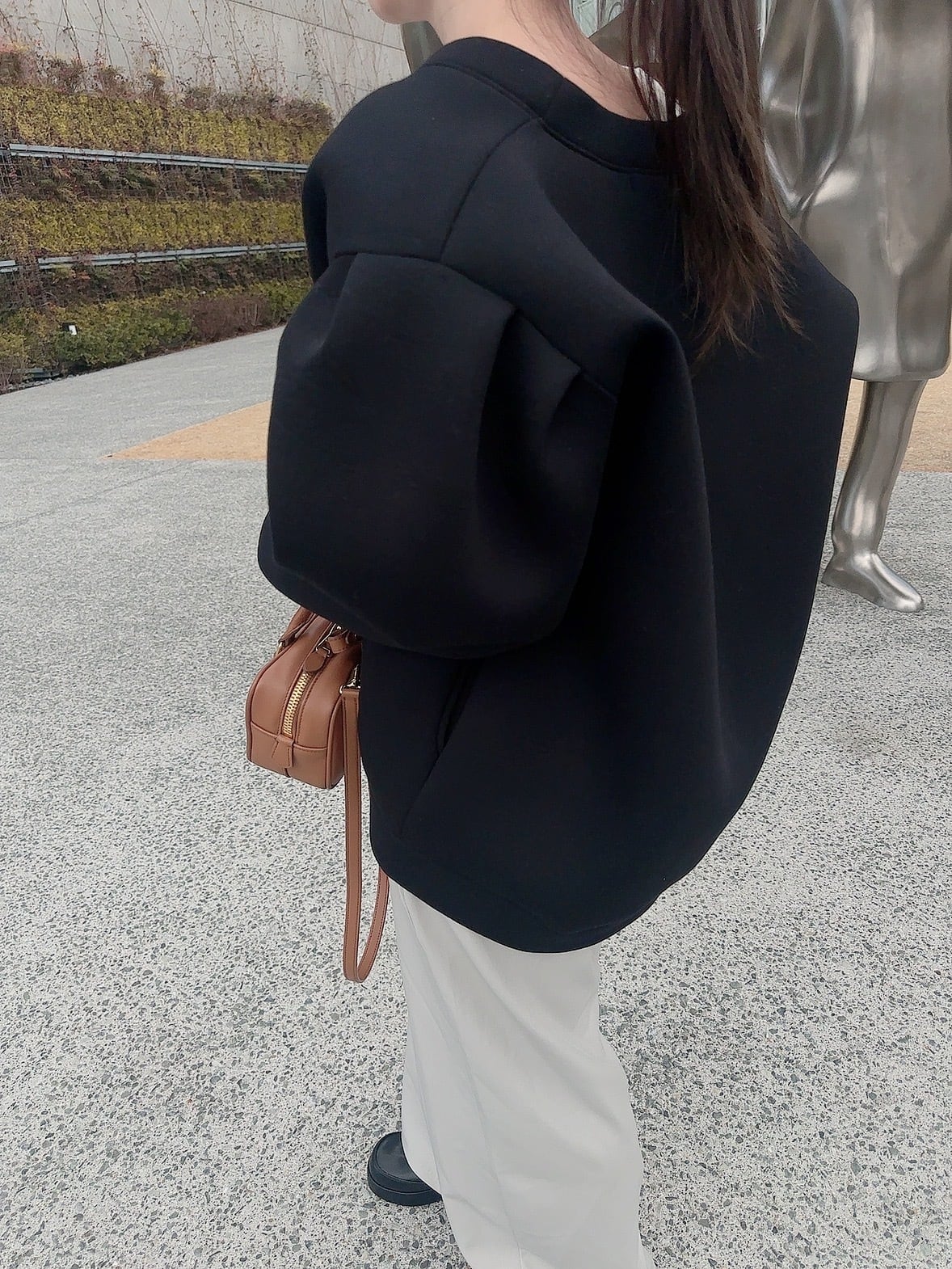 一見シンプルなデザインですが、横から見るとコクーンのシルエットでこなれ感を演出。