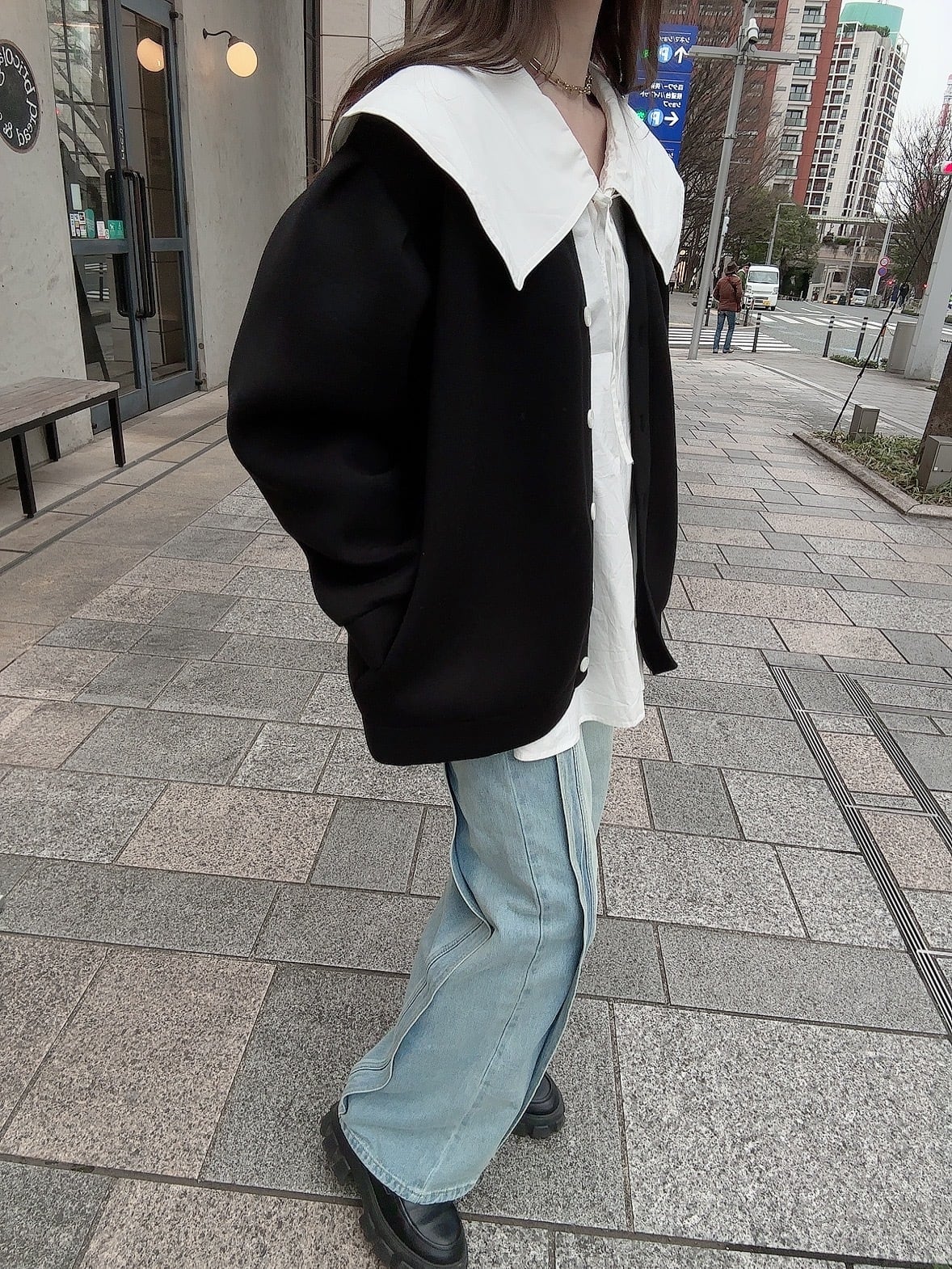ゆったりなサイズ感はストレスなくどんなインナーとも合わせていただきやすいです。