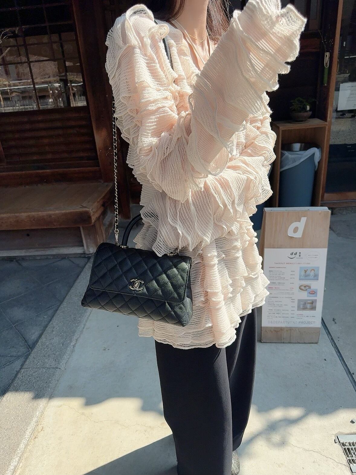 ぱっと目を引くティアードフリルが華やかなチュニック。
