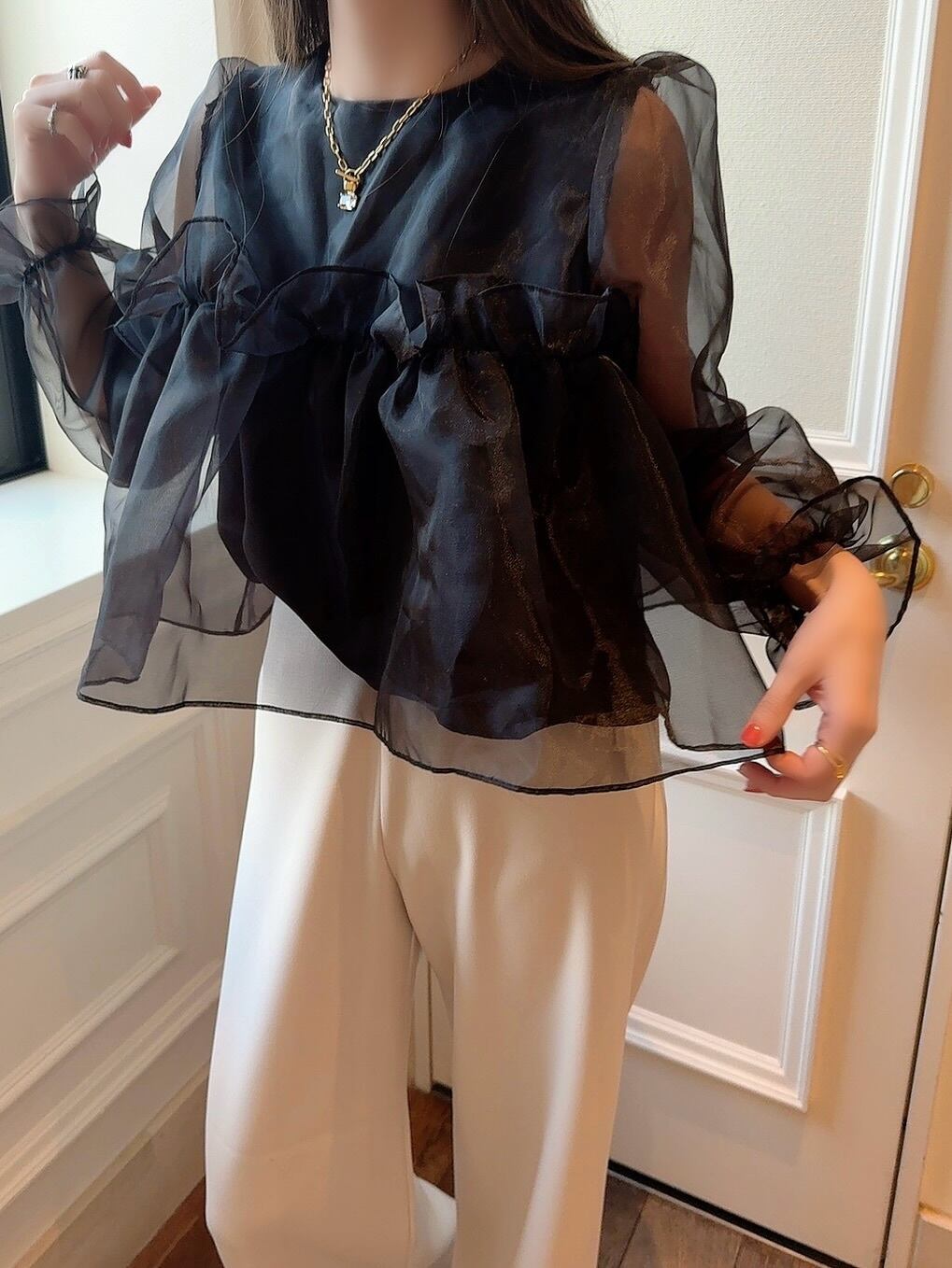 Sheer organdy blouse /black(即納商品)