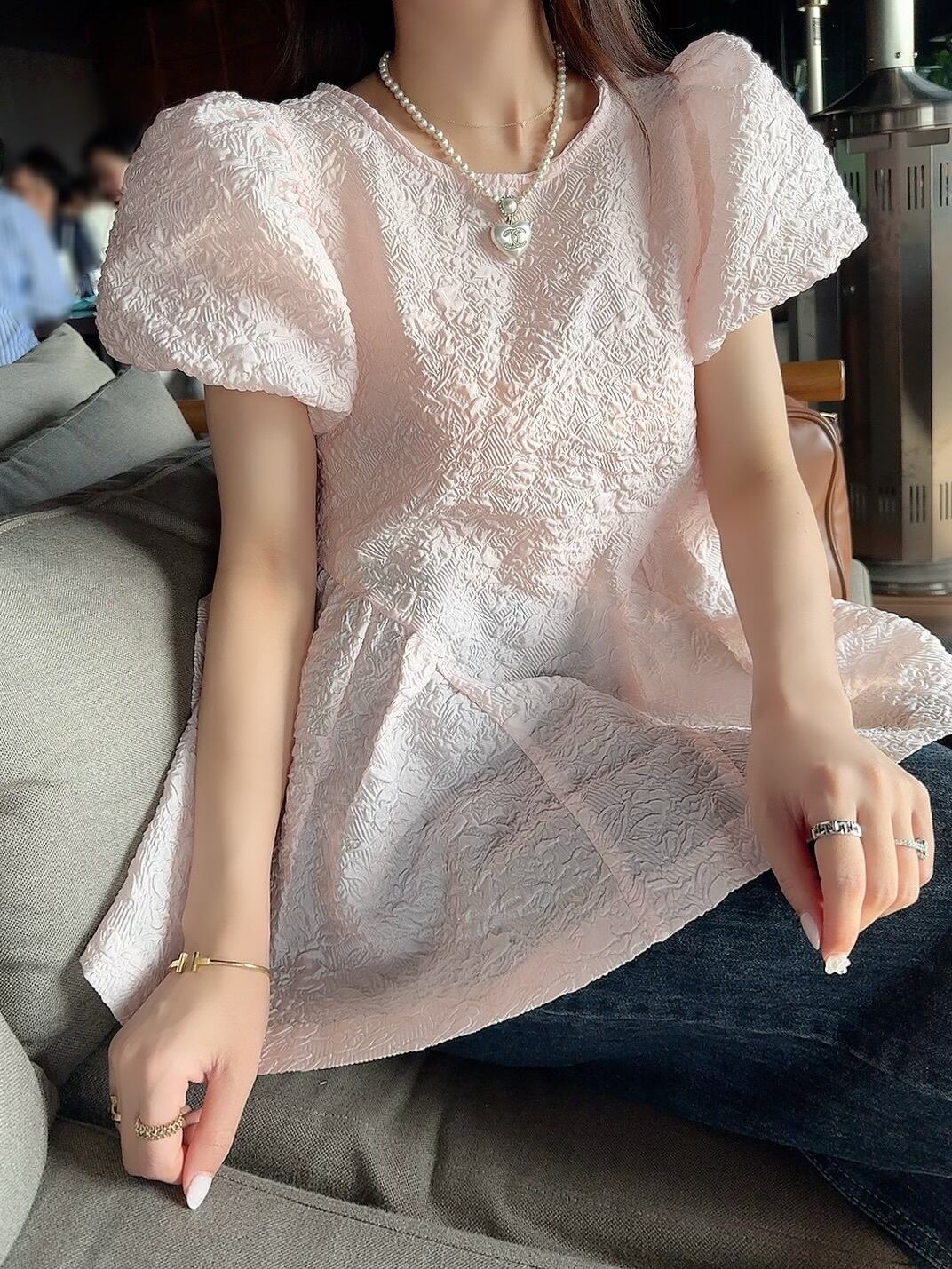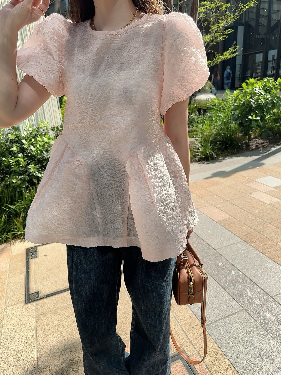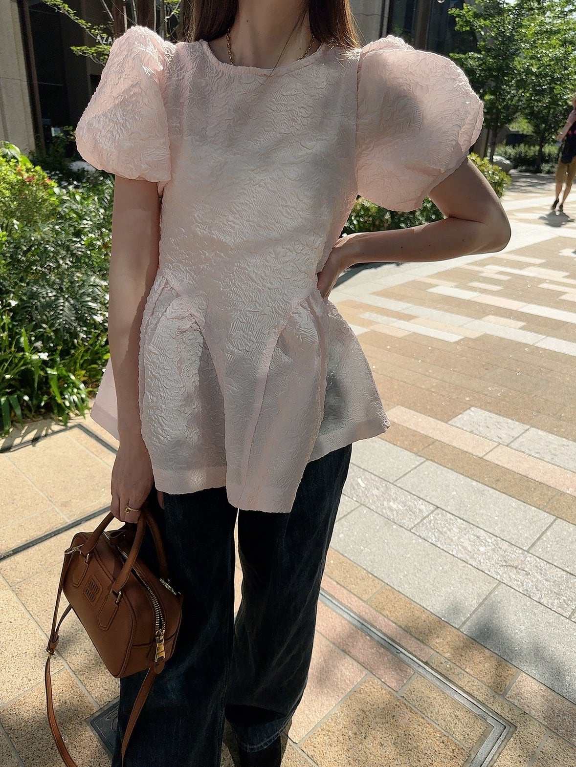 程よいボリュームが可愛いパフスリーブと、バックスタイルの肌見せで抜け感をプラスした、360度どこから見ても可愛いブラウス。