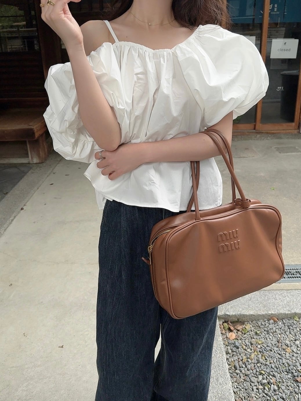 One shoulder puff blouse /white(即納商品)