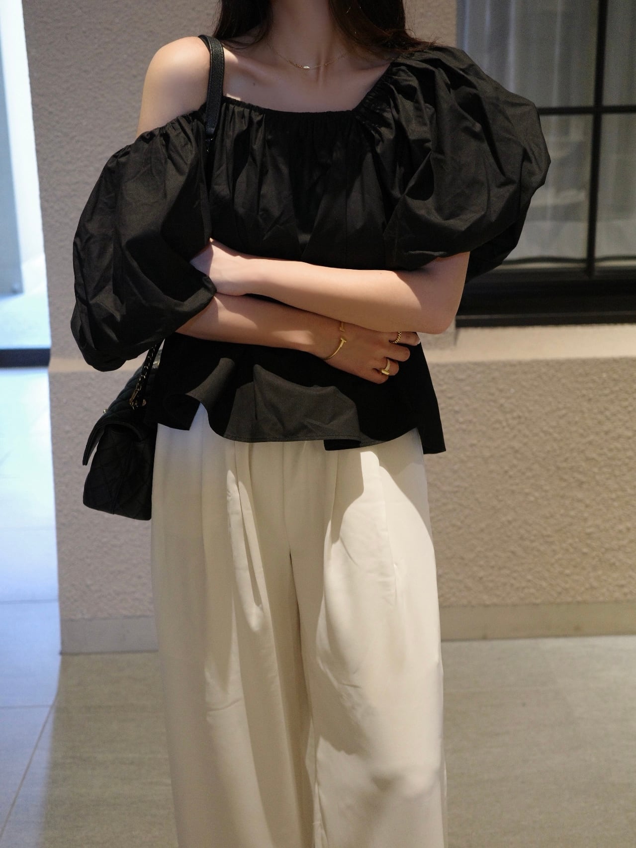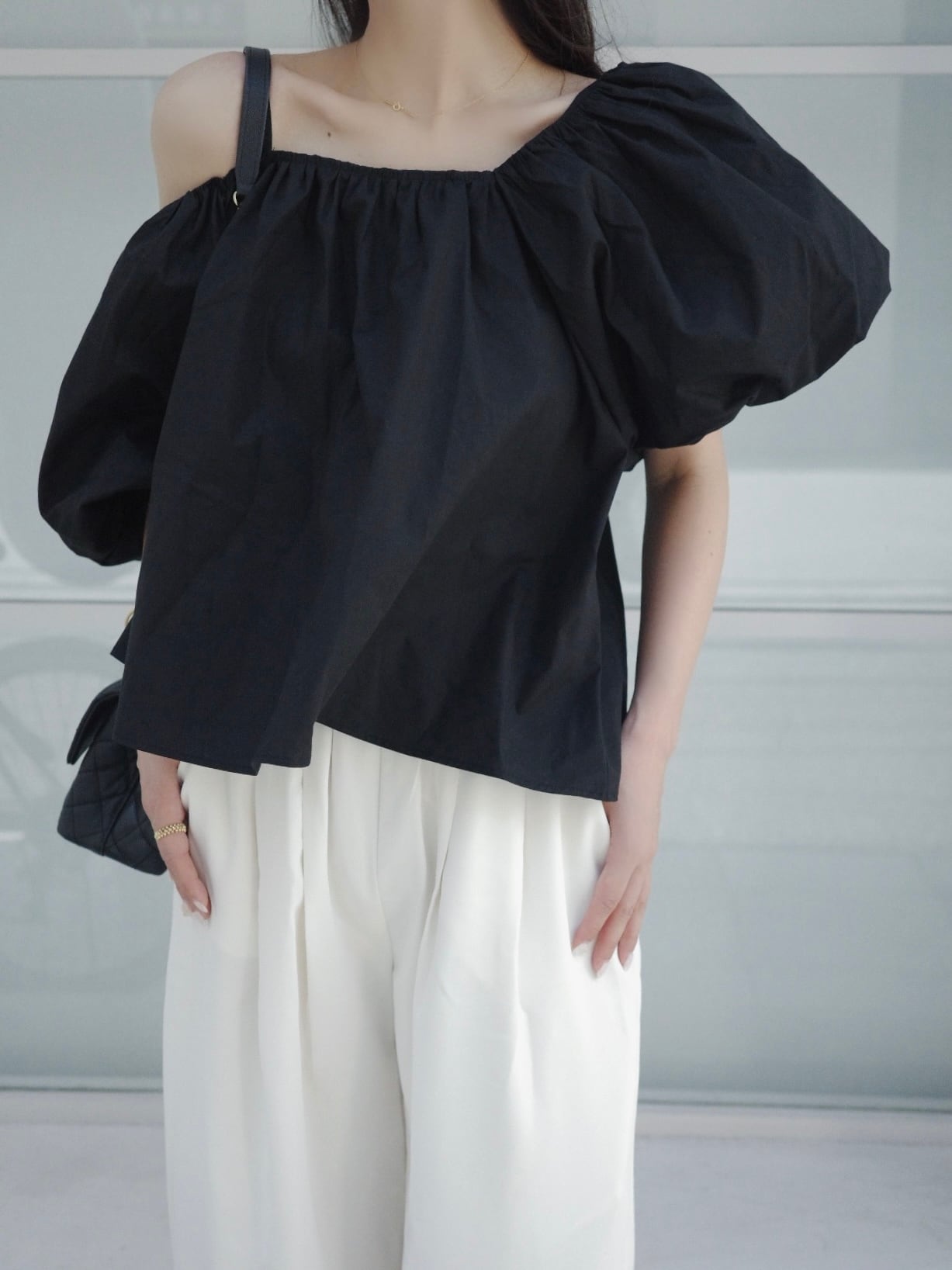 One shoulder puff blouse /black(6月下旬〜7月上旬頃発送予定)