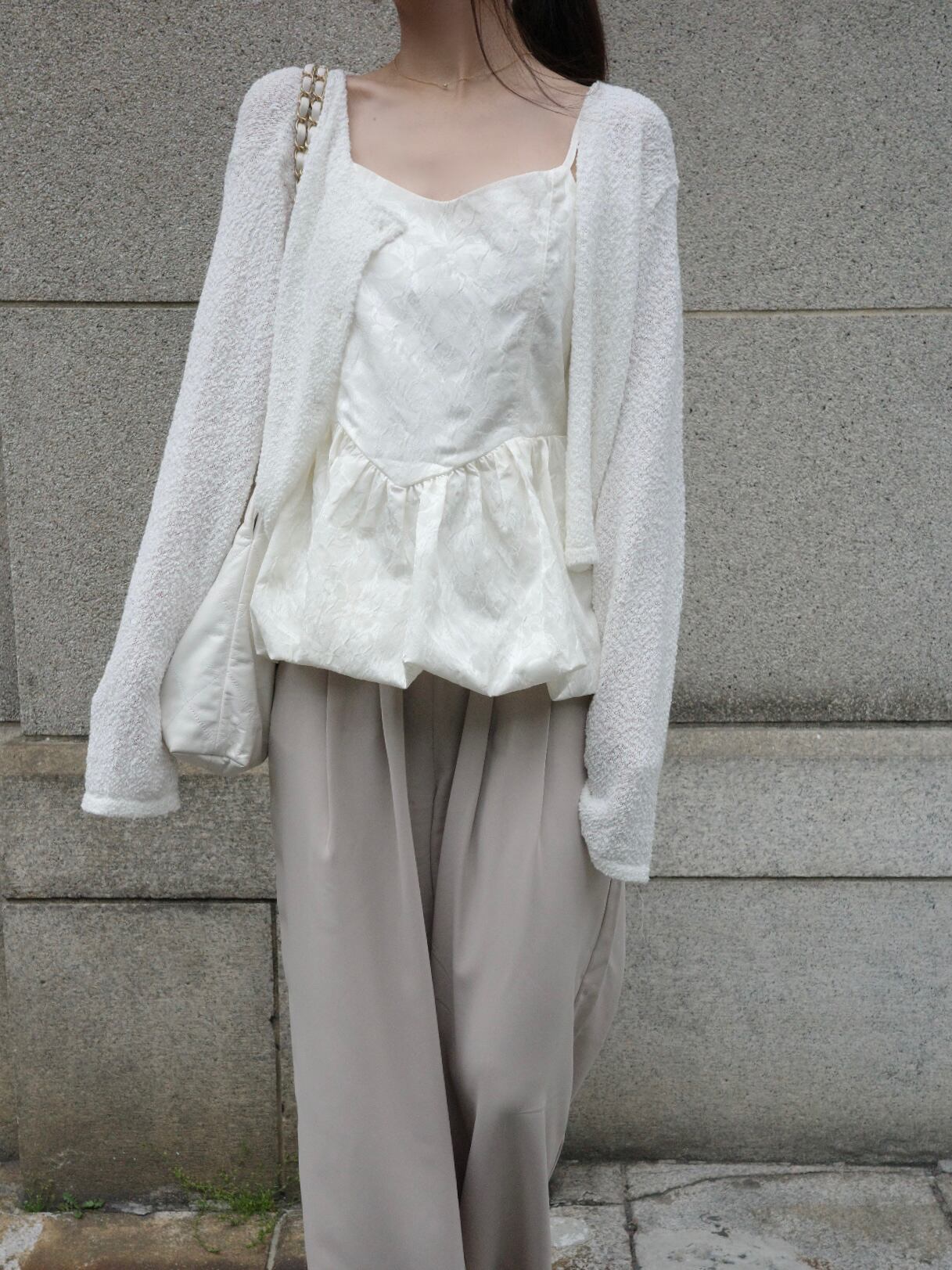 同素材のトップスと合わせたセットアップコーデがおすすめです。デイリーから特別な日まで、幅広くコーデを楽しんでいただける一本です。