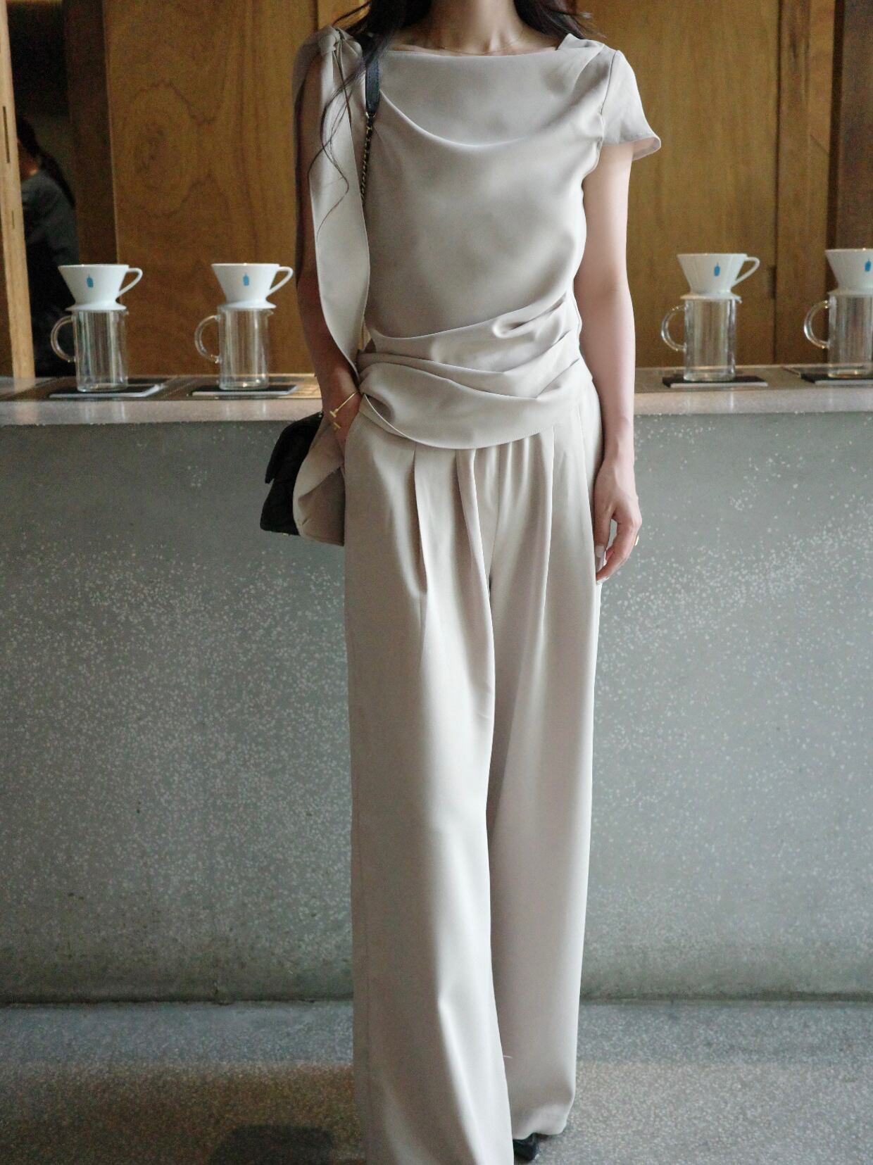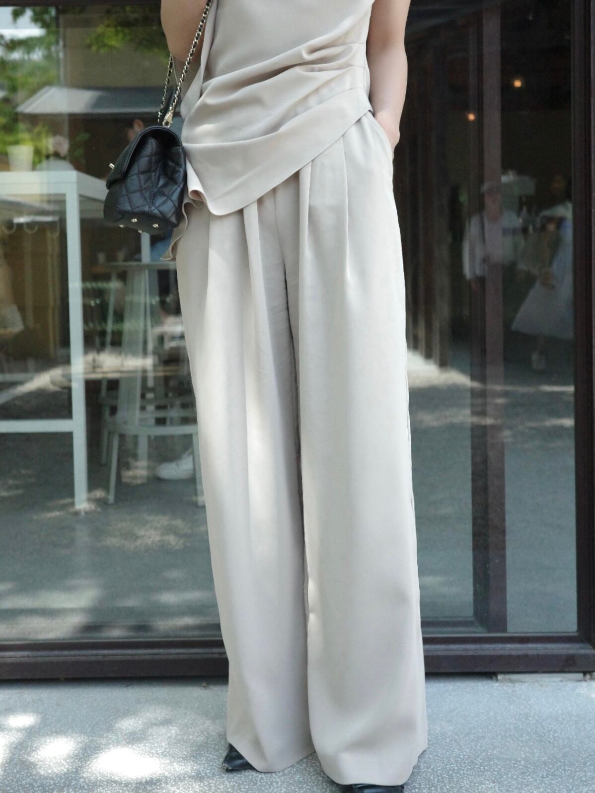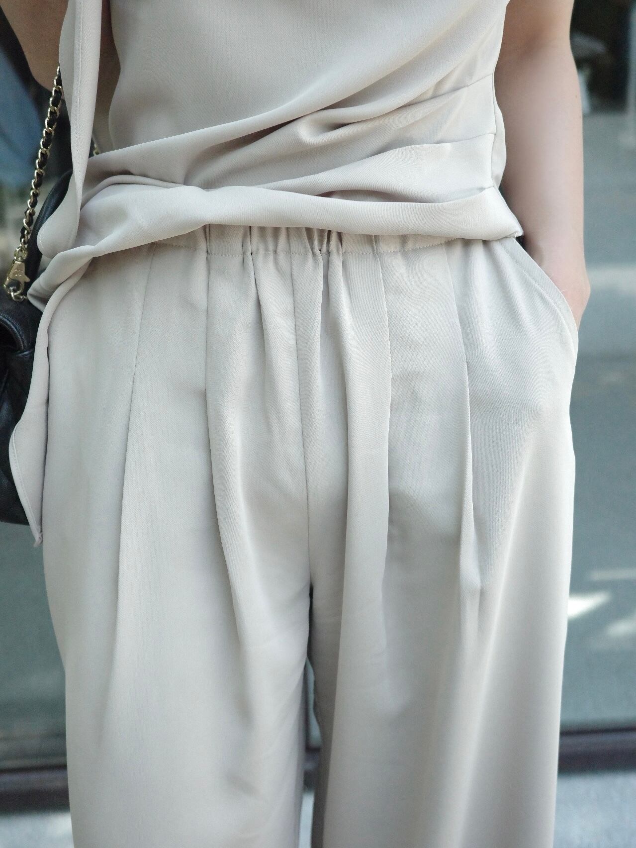 またタックが入っており、ラフなシルエットに立体感とドレープ感をプラスし美脚効果抜群。