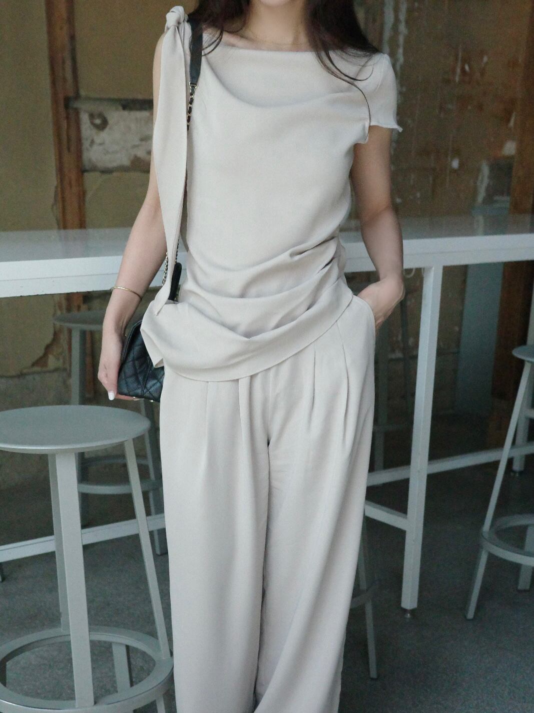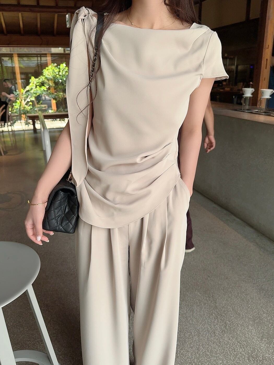 Ribbon drape blouse / beige (6月下旬〜7月上旬頃発送予定)