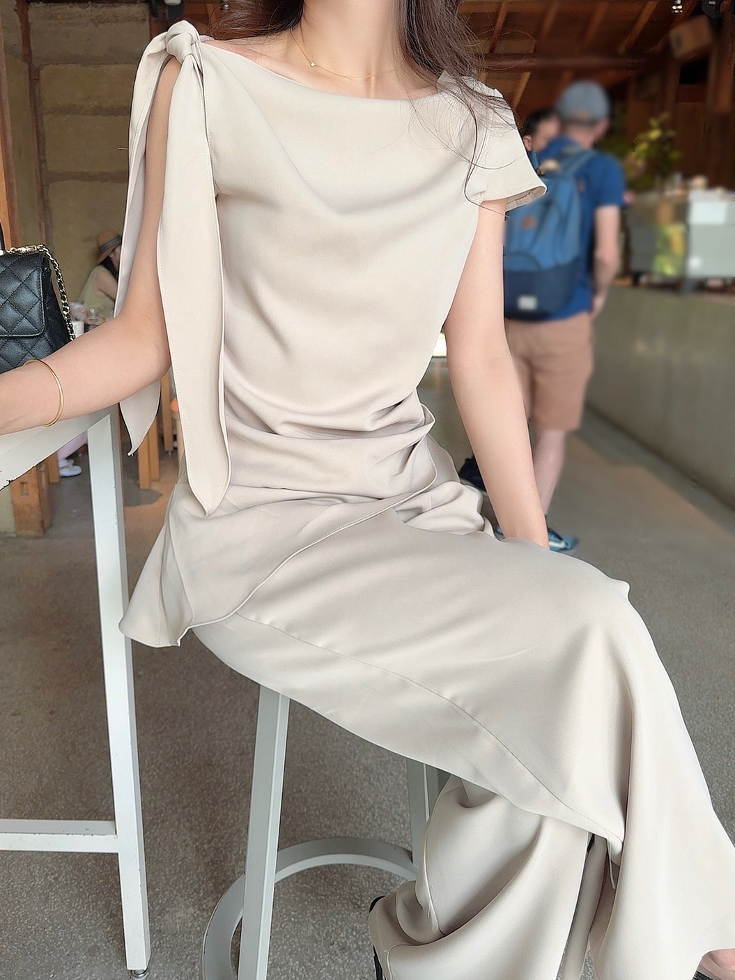 肩の紐を結んだり、垂らしたりお好みのスタイルを楽しんでいただけるのもポイント。