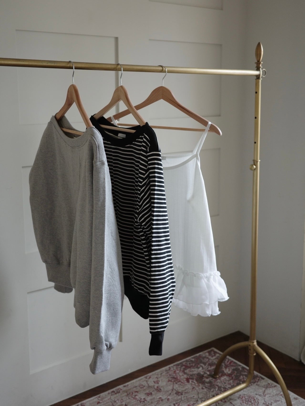 合わせるアイテム次第で表情を変えられる、大人のワードローブに取り入れたい万能トップスです。
