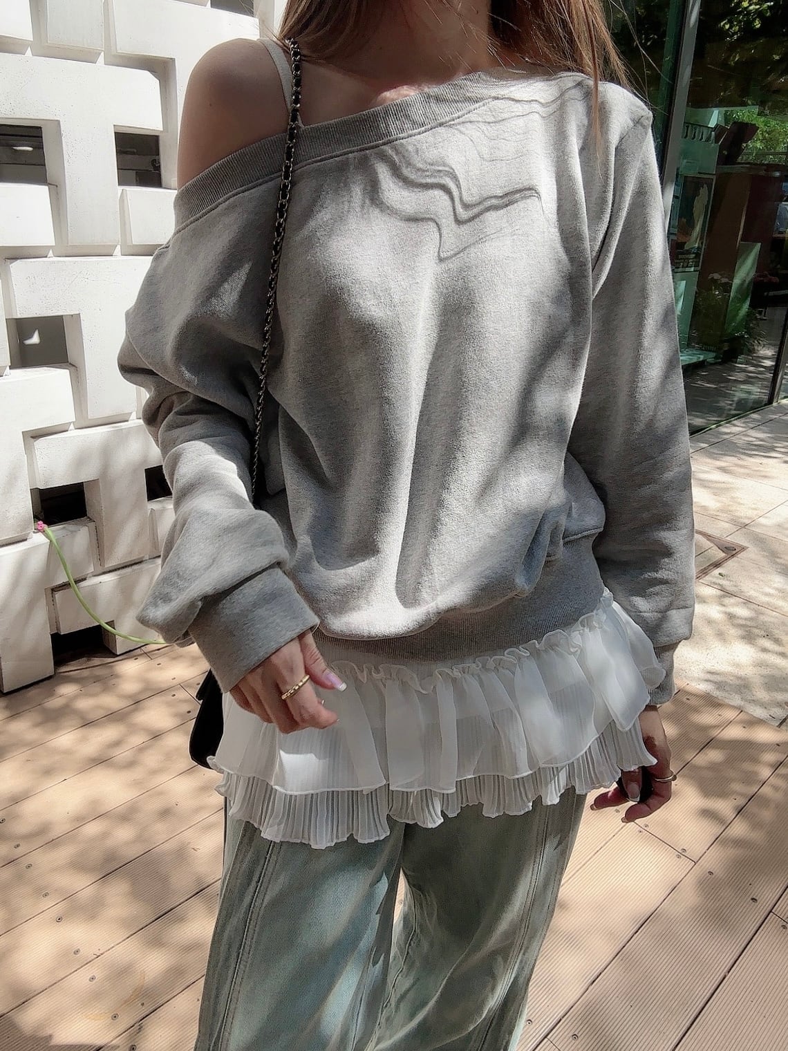 Offshoulder sweat tops / grey (10月中旬頃発送予定)