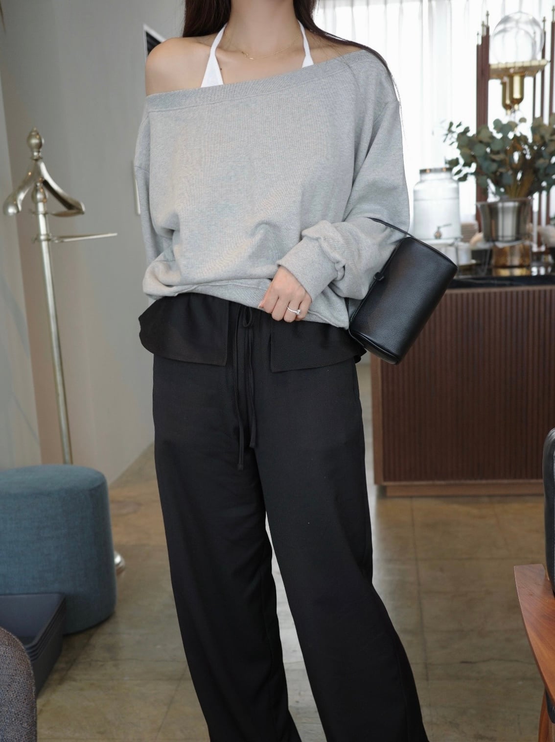 ざっくりしたトップスのインナーとしてちらっと紐見せスタイルはもちろん、レイヤードスタイルのアクセントにも活躍する一枚です。