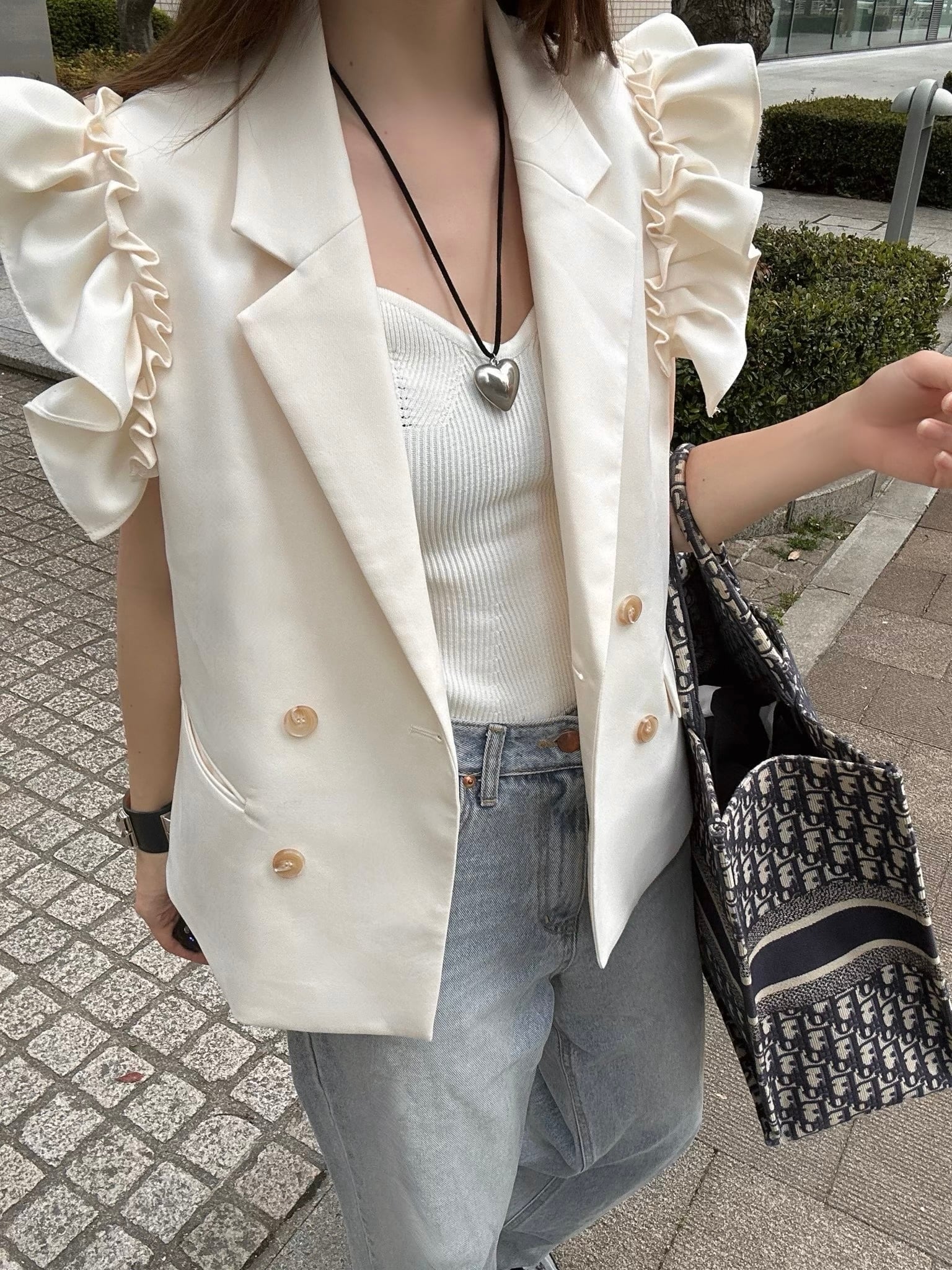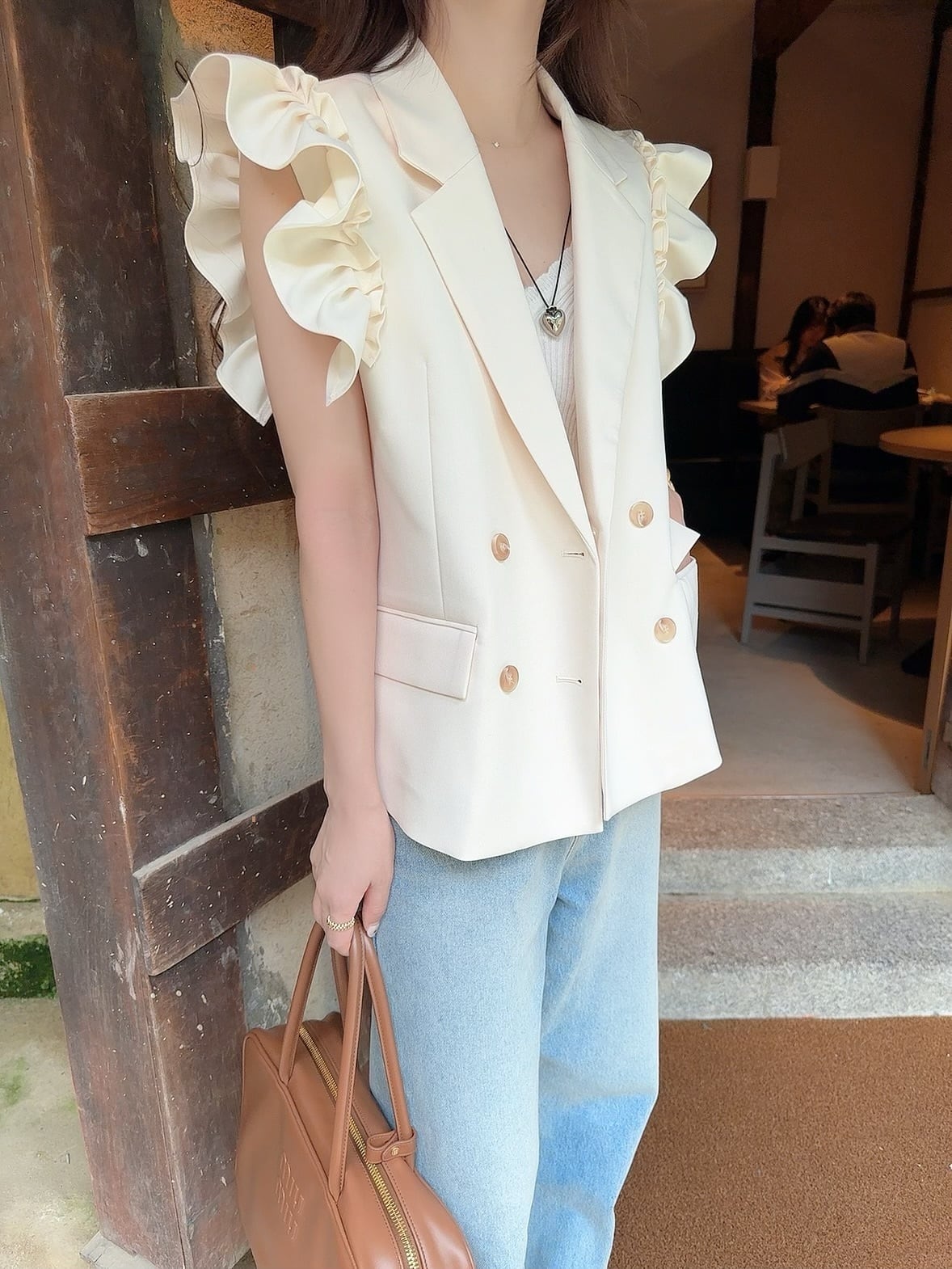 Frill tailored vest / ivory(10月上旬〜中旬頃発送予定)