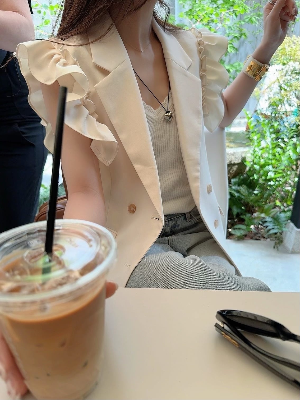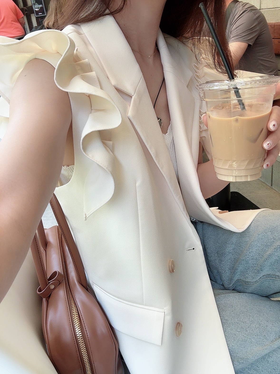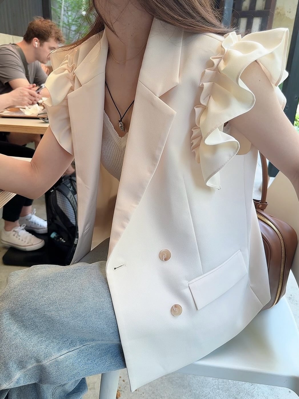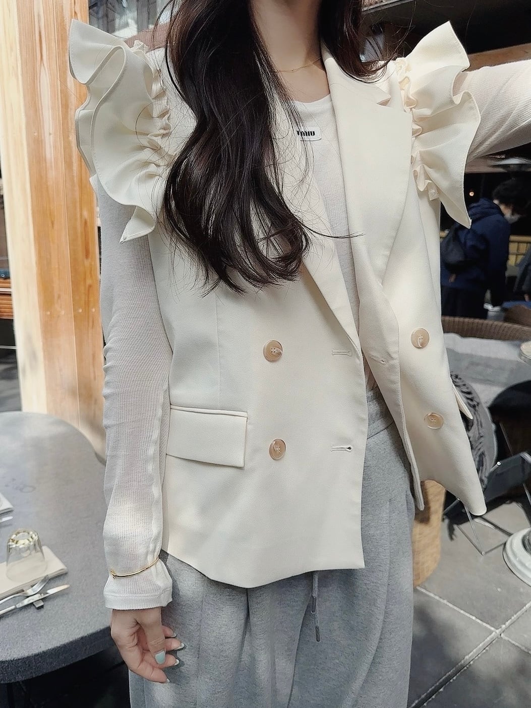 ショルダーのフリルデザインがポイントのベスト。
