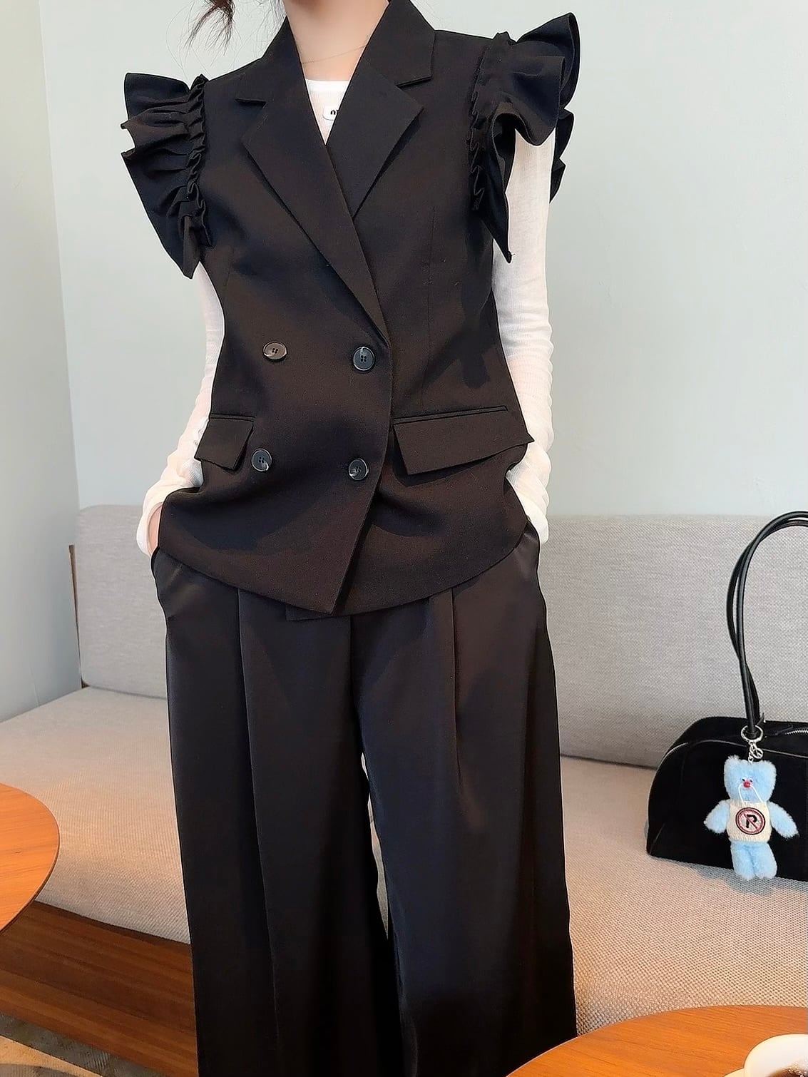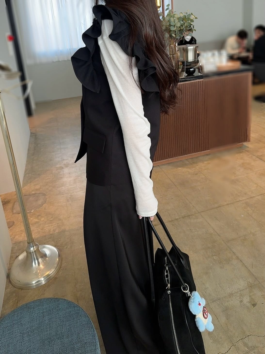 Frill tailored vest / black(10月上旬〜中旬頃発送予定)