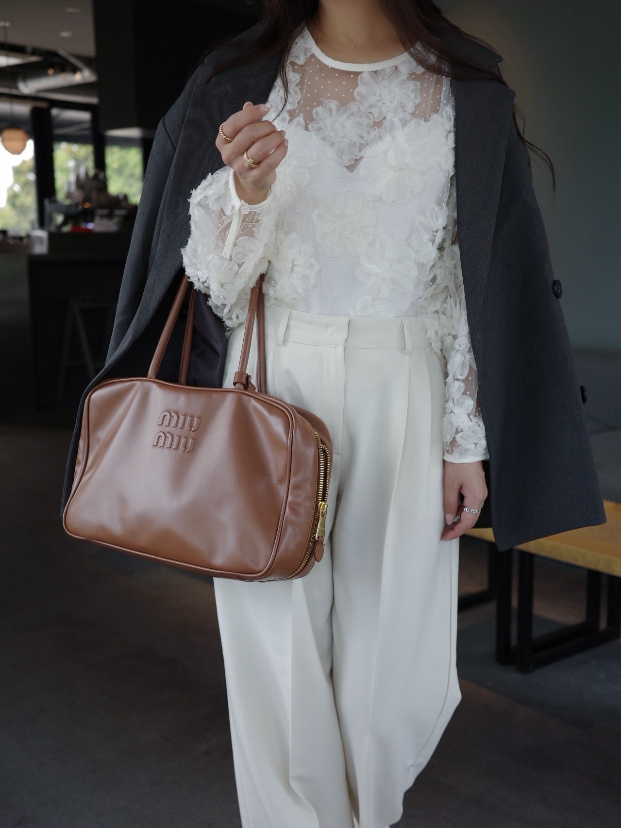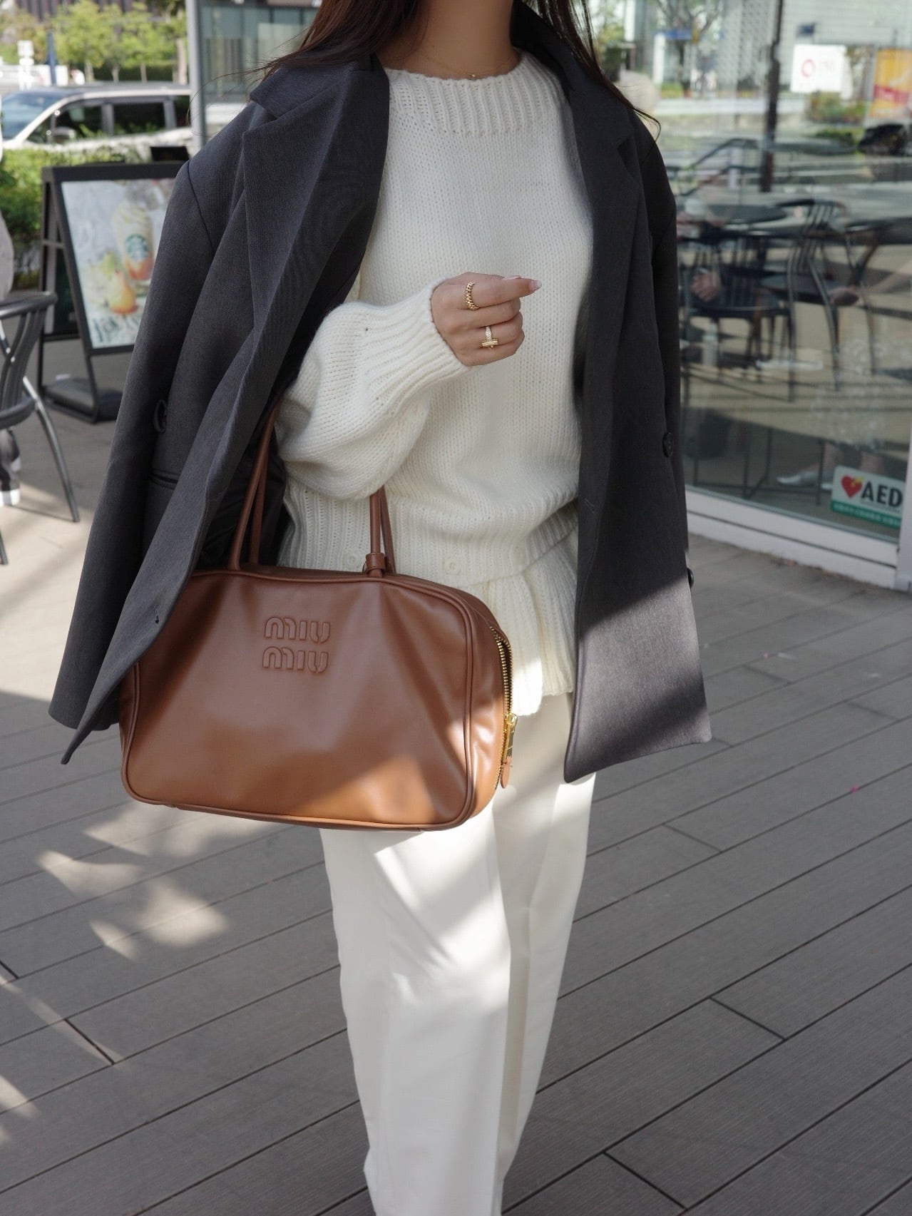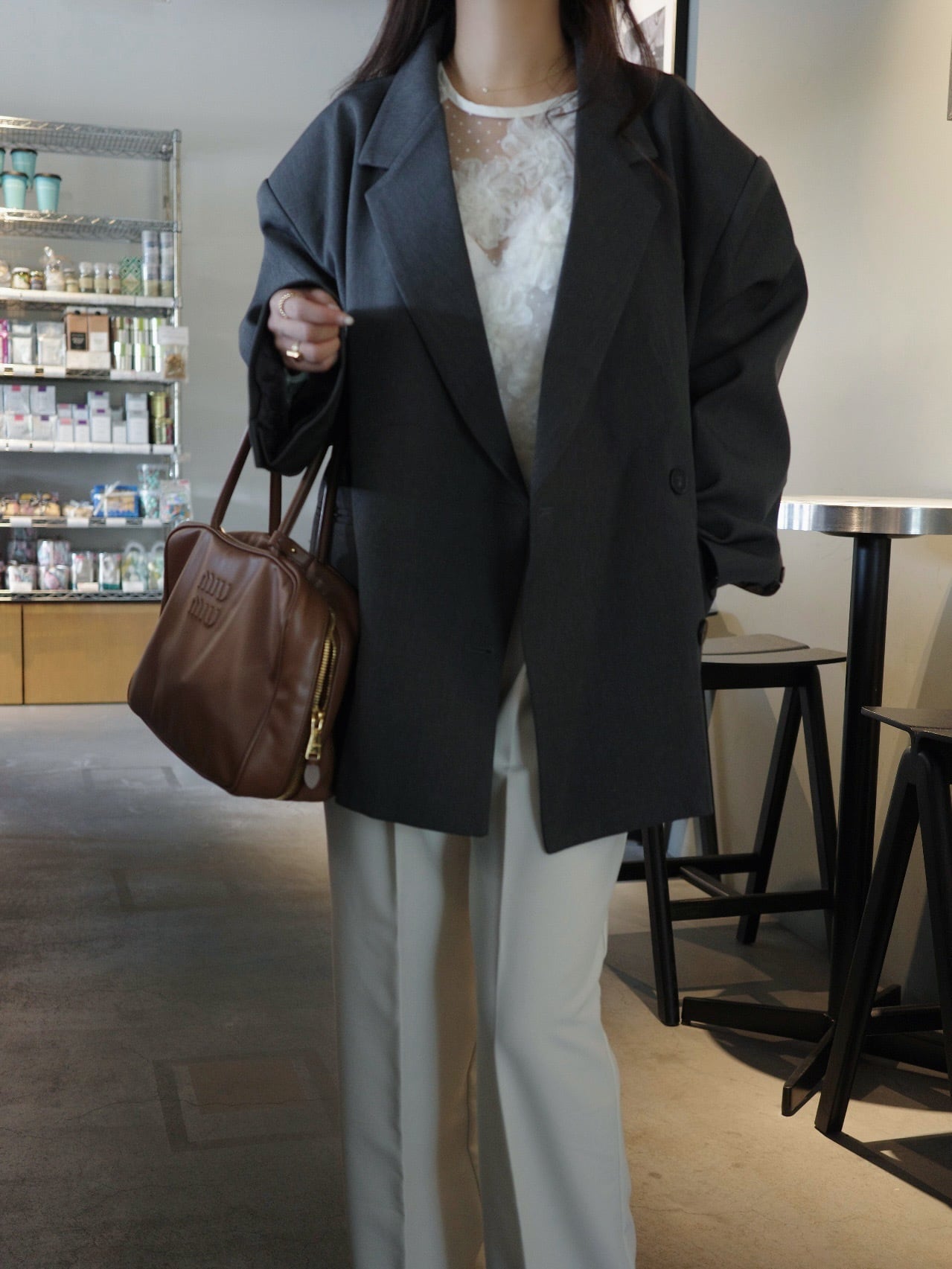 肩を落とした抜け感のある雰囲気で、モードなスタイルに。