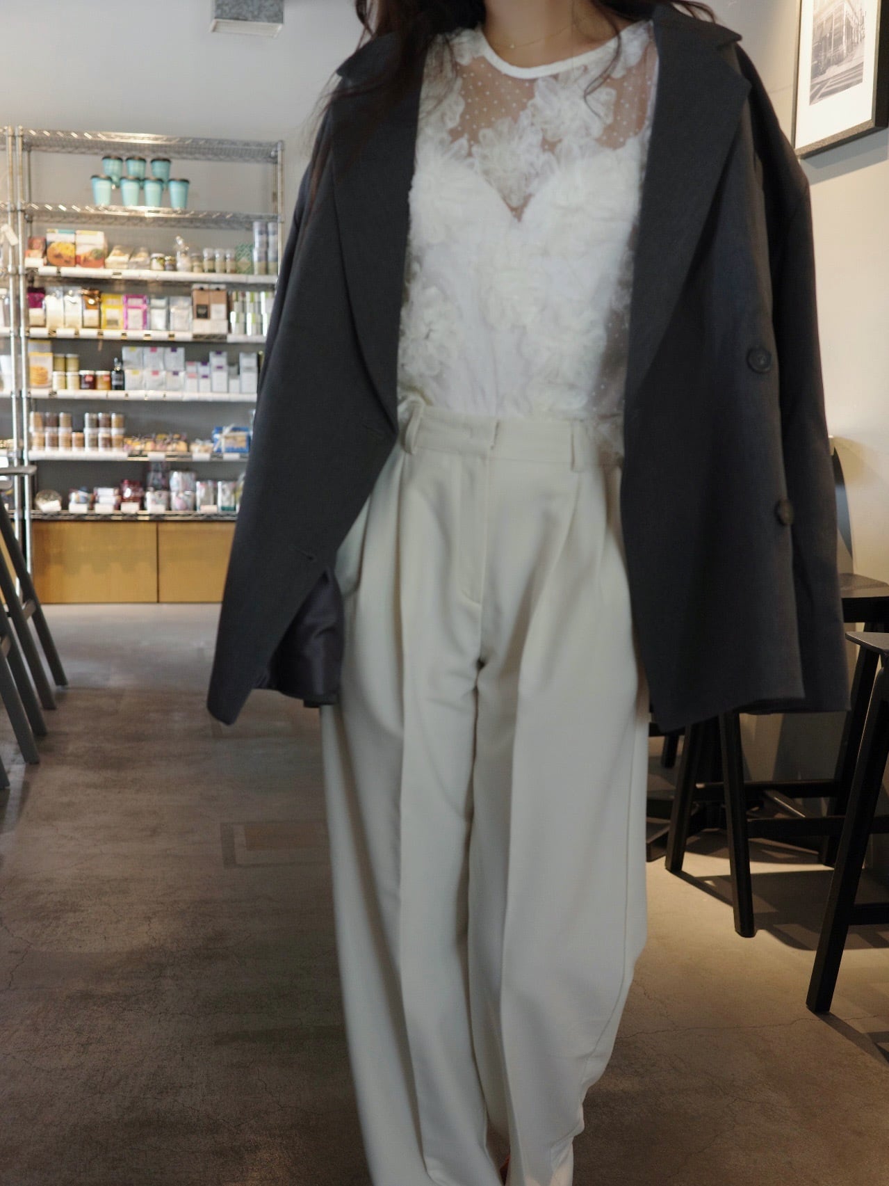 長めの袖丈がはメンズジャケットをさらりと羽織ったような演出に。