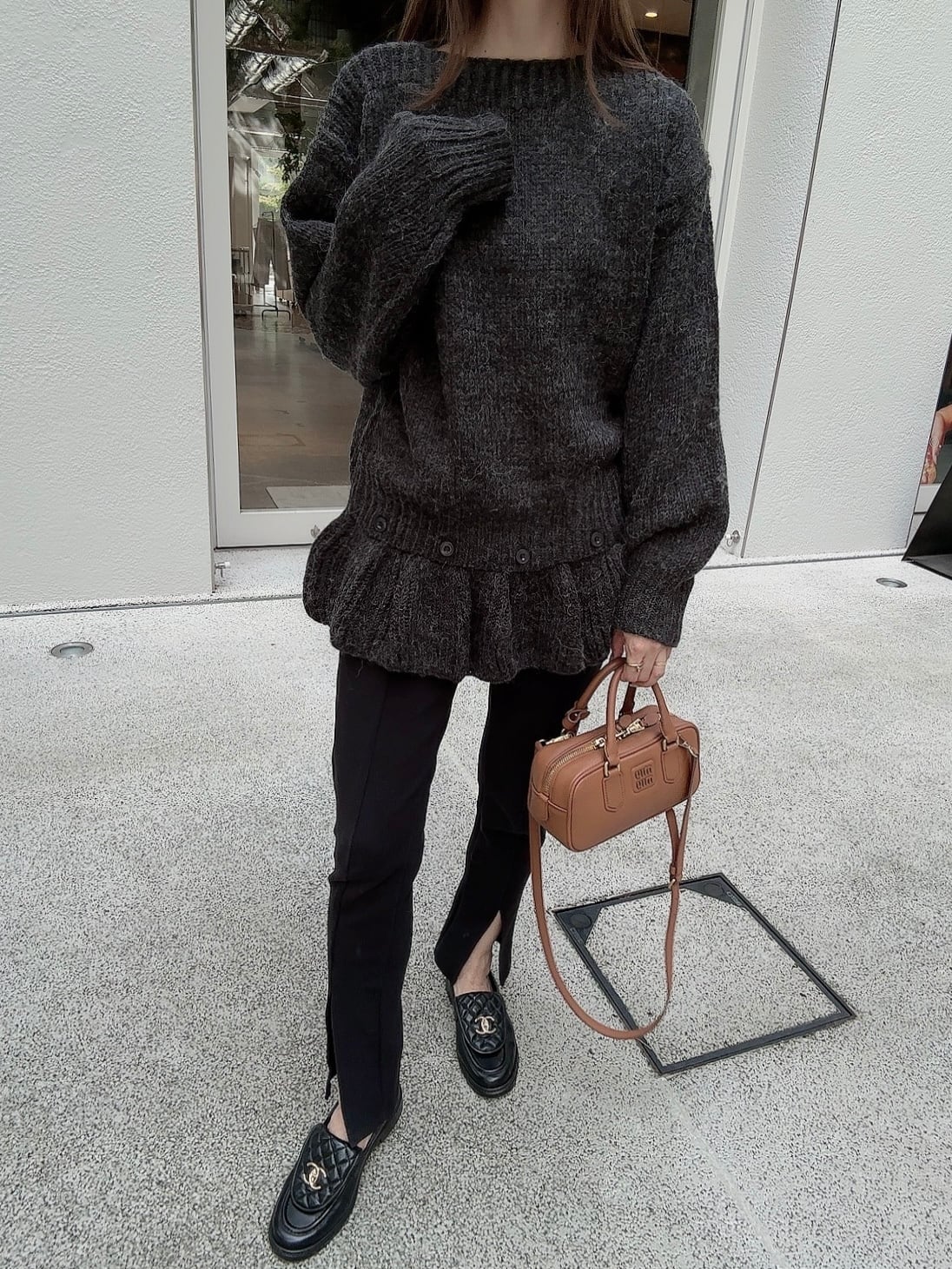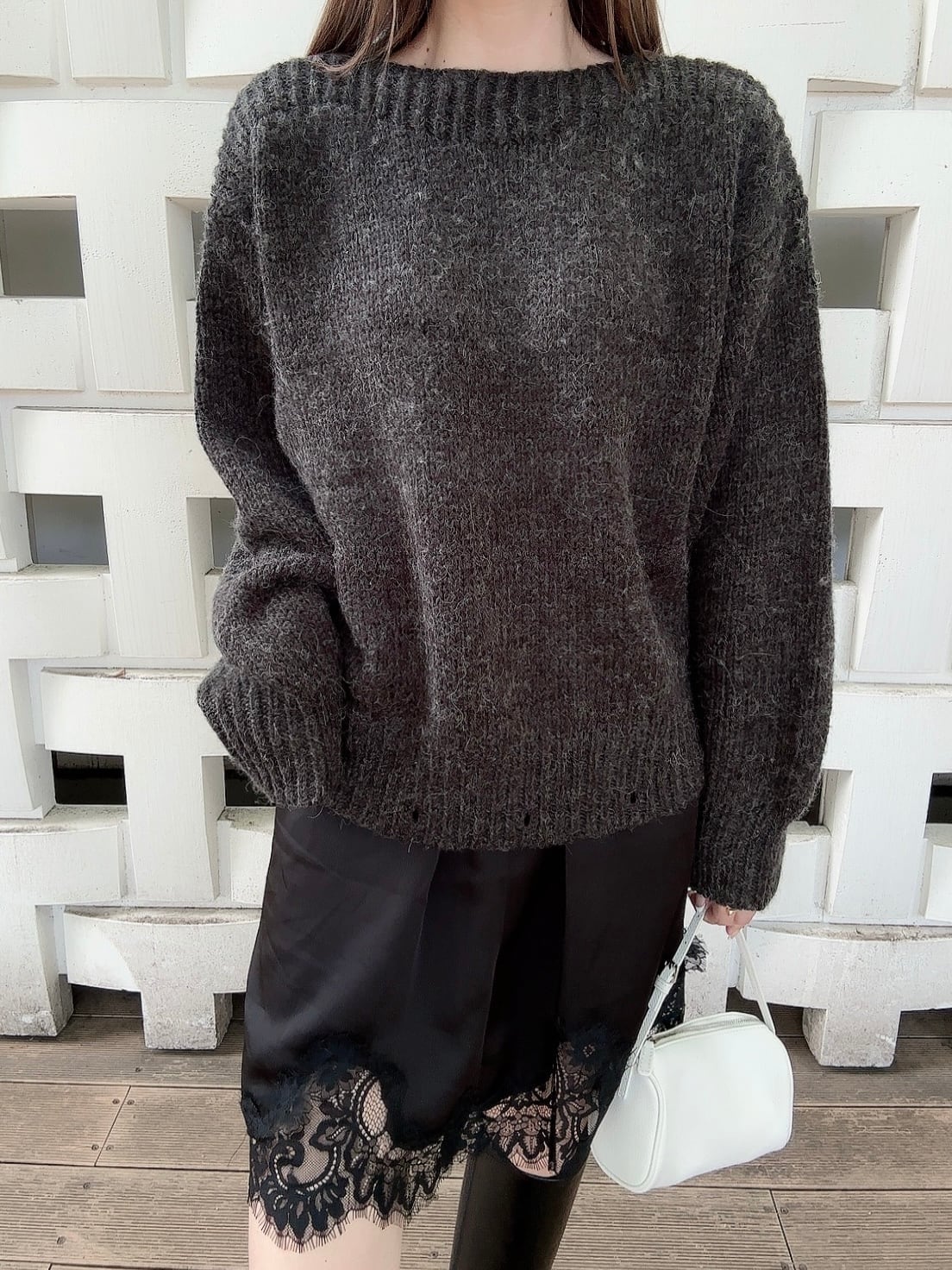 大人っぽさと甘さ控えめのバランスが魅力のニット。