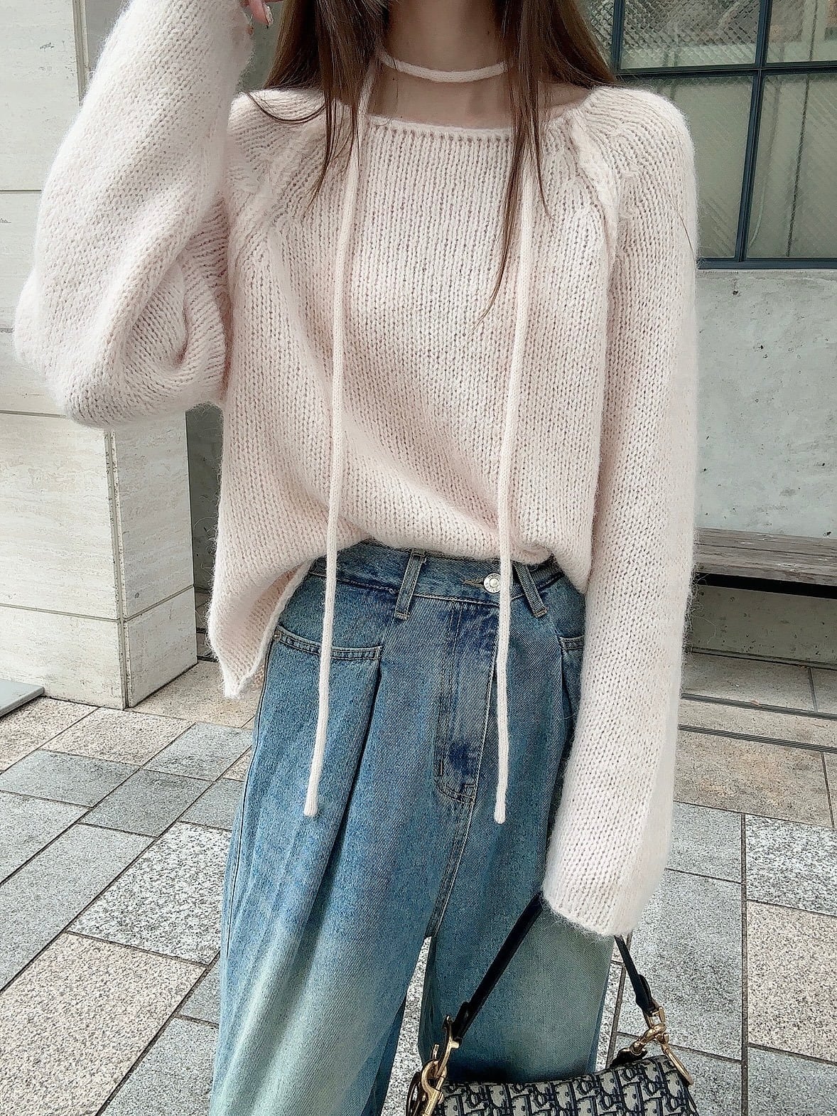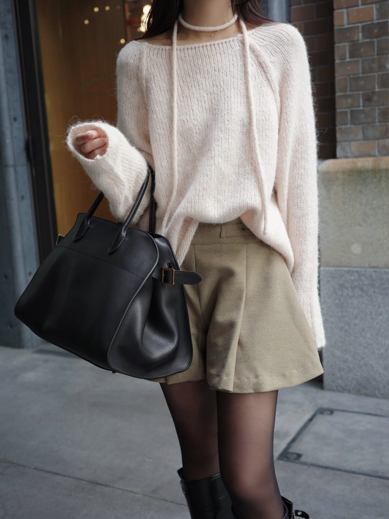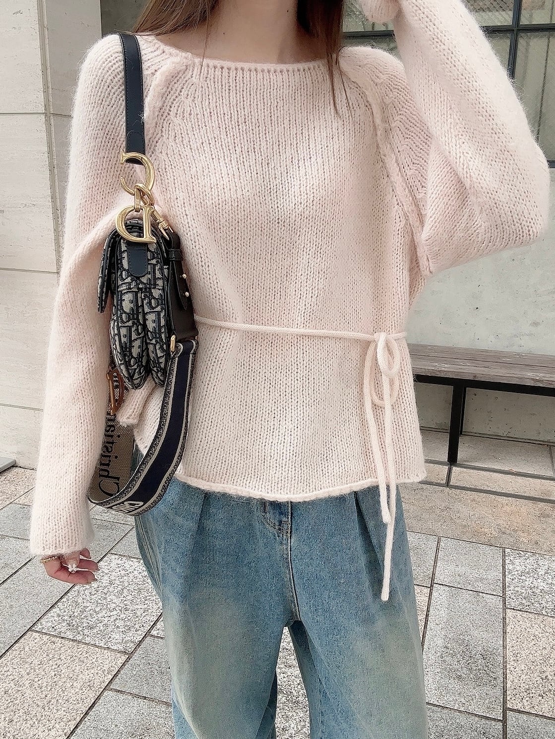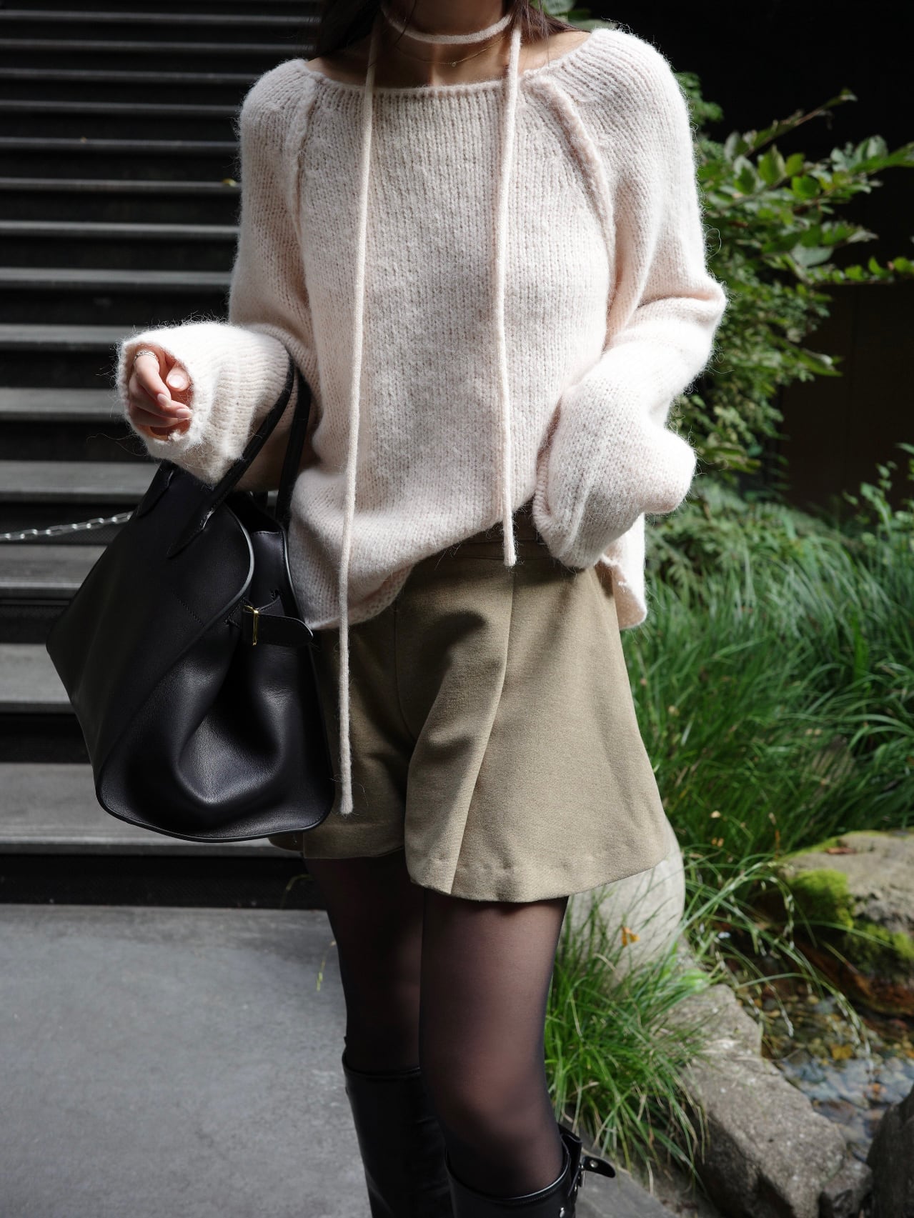 アンゴラとアルパカのあたたかな素材感とやわらかなトーンのカラーが肌を明るく魅せ、モードな中にも女性らしさを感じる仕上がり。