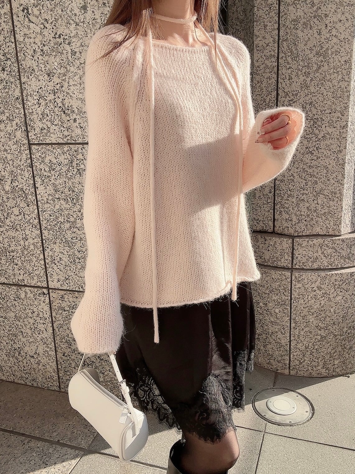 Strap cheney knit / pink (11月中旬〜下旬頃お届け予定)