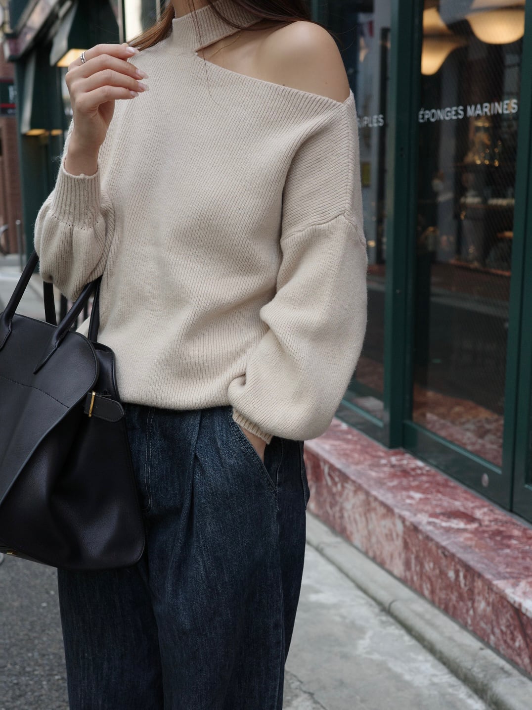 Cut out shoulder knit tops / beige(12月上旬〜中旬頃発送予定)