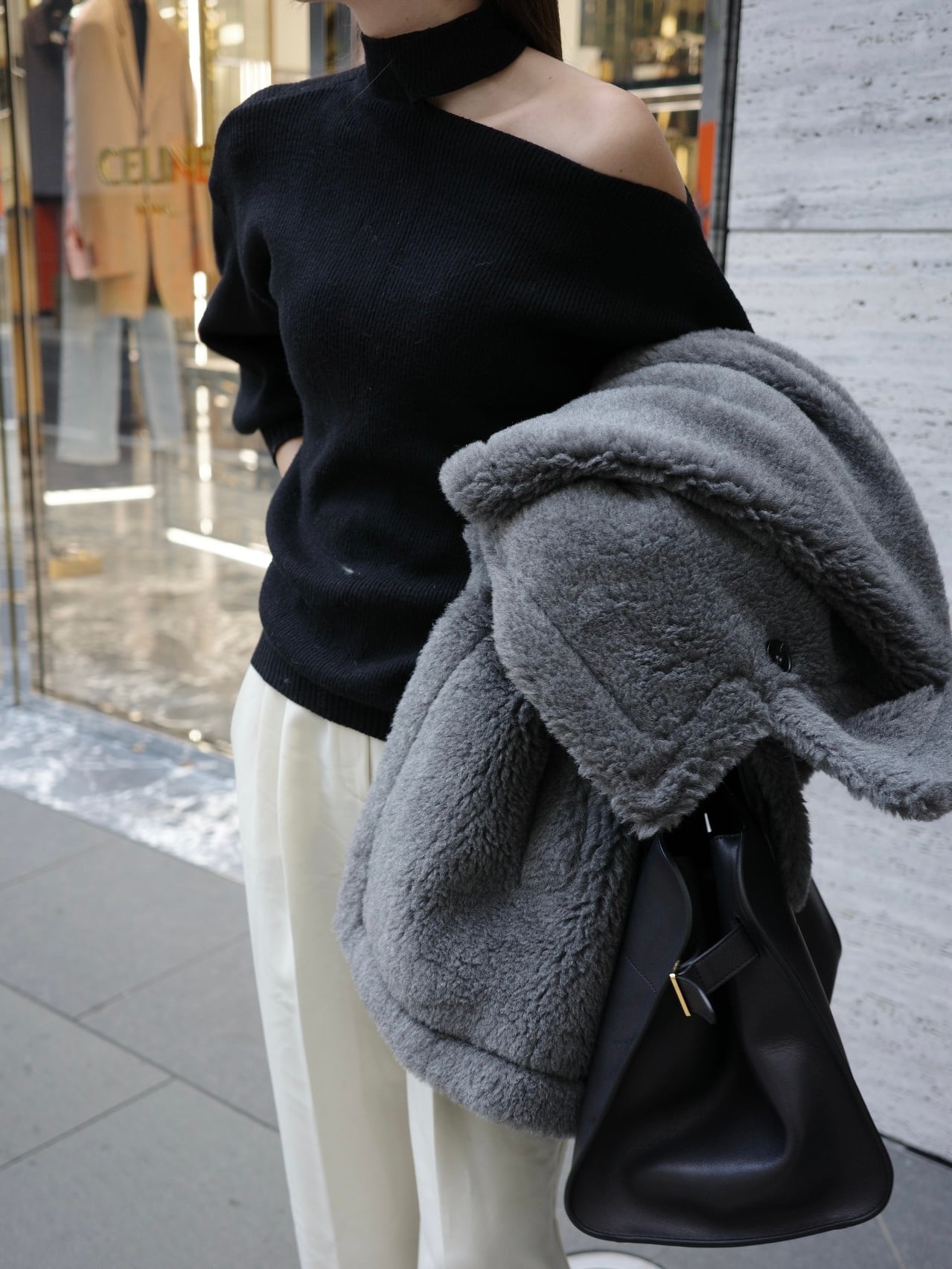 Cut out shoulder knit tops / black(12月上旬〜中旬頃発送予定)