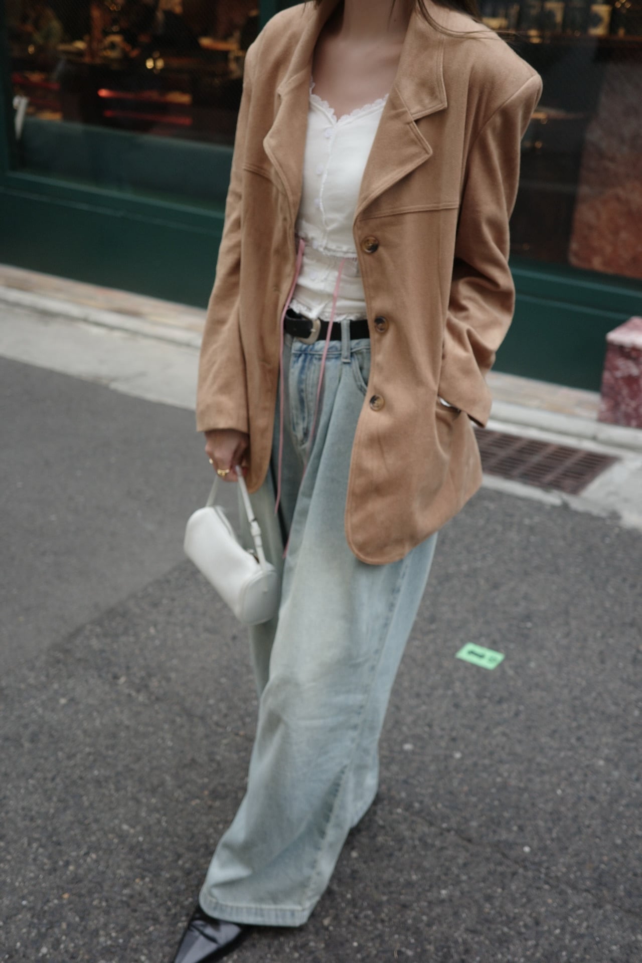 ややゆったりとしたシルエットで、抜け感のあるおしゃれな印象に。