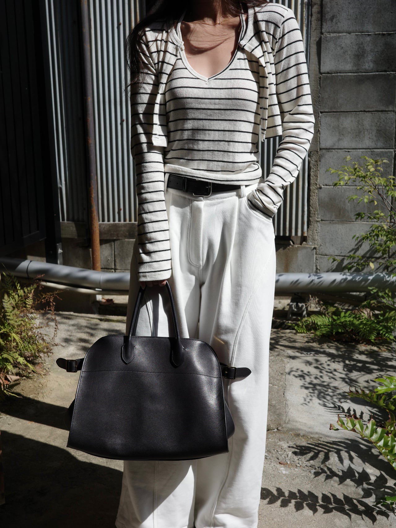 腰位置が高く見えるため、どんなボトムとも相性の良い万能アイテムです。