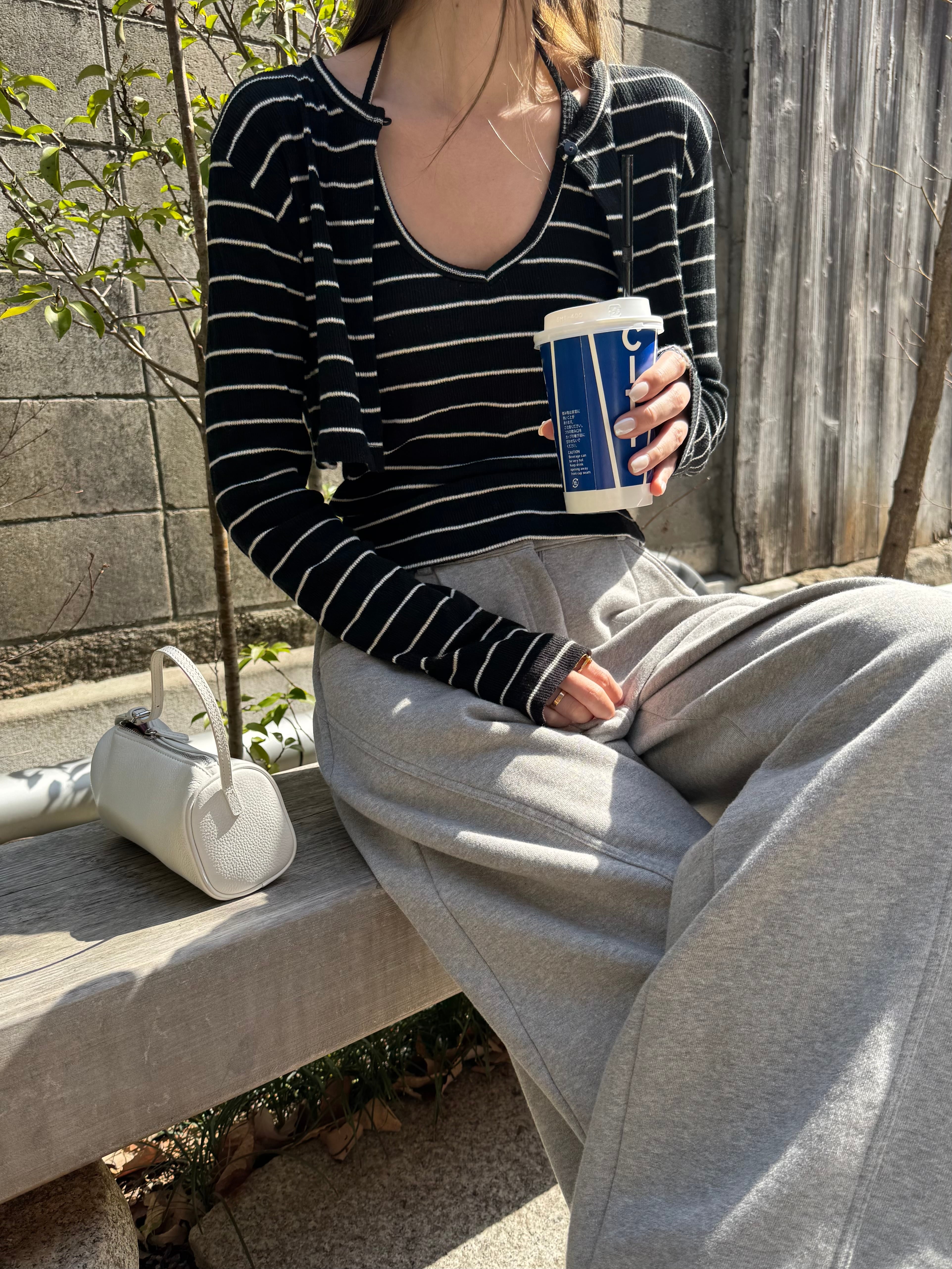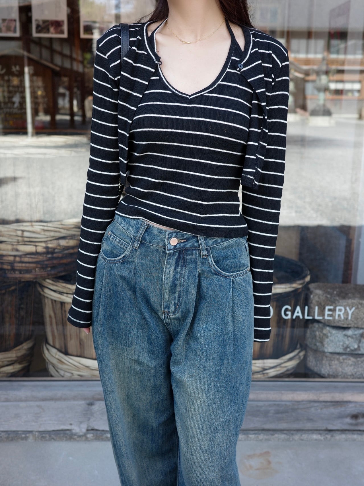 Boarder cami cardigan set / black(3月下旬〜4月上旬頃発送予定)