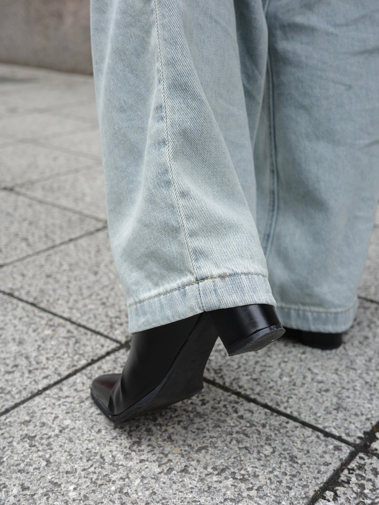 約5cmのヒールは太めで安定感があり、自然にスタイルアップしてくれる絶妙な高さです。