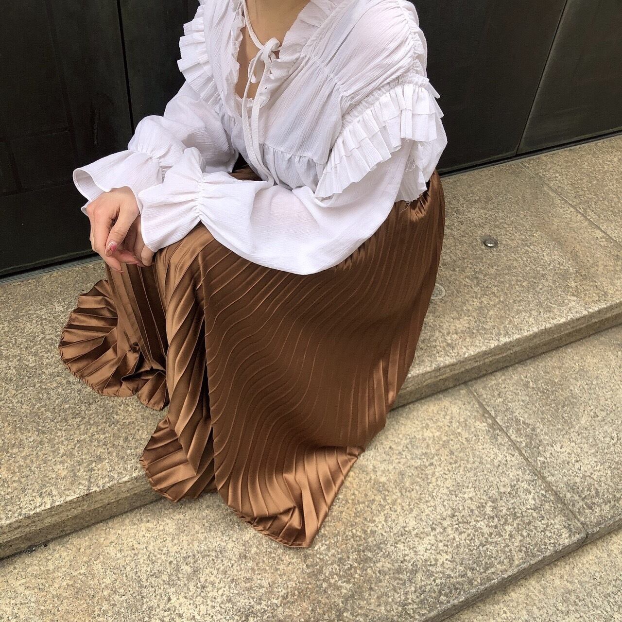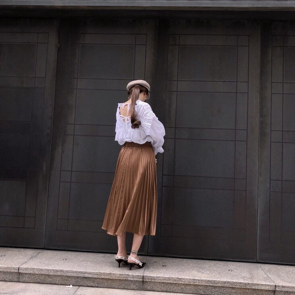 光沢感のあるプリーツスカート。