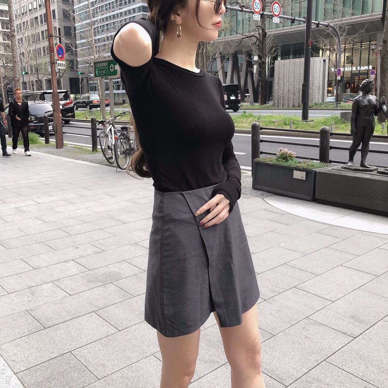 Asymmetry mini skirt /gray(予約商品4月下旬発送予定)