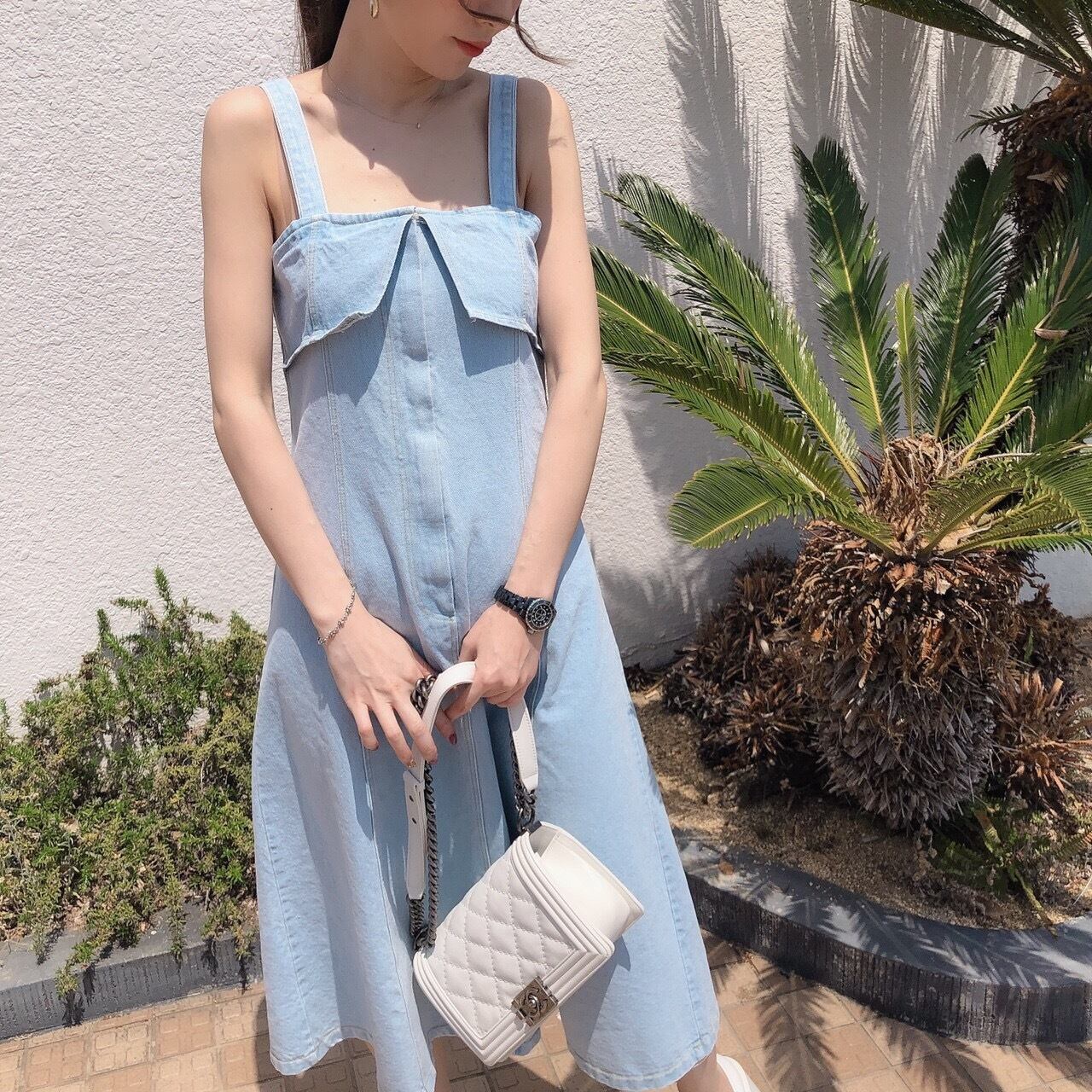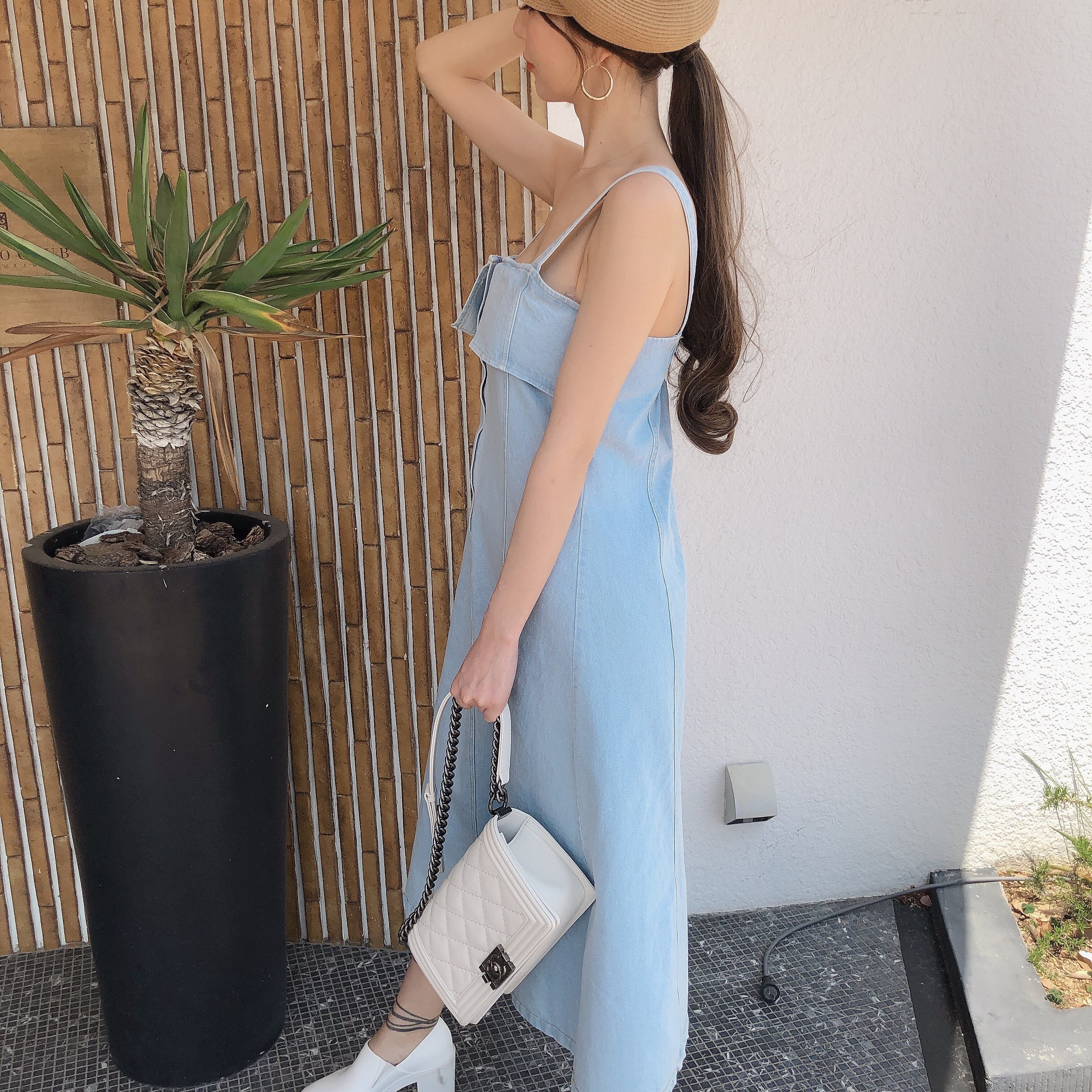 カジュアルになりがちなデニムopをスタイリッシュな印象にさせるフロントジップワンピース。