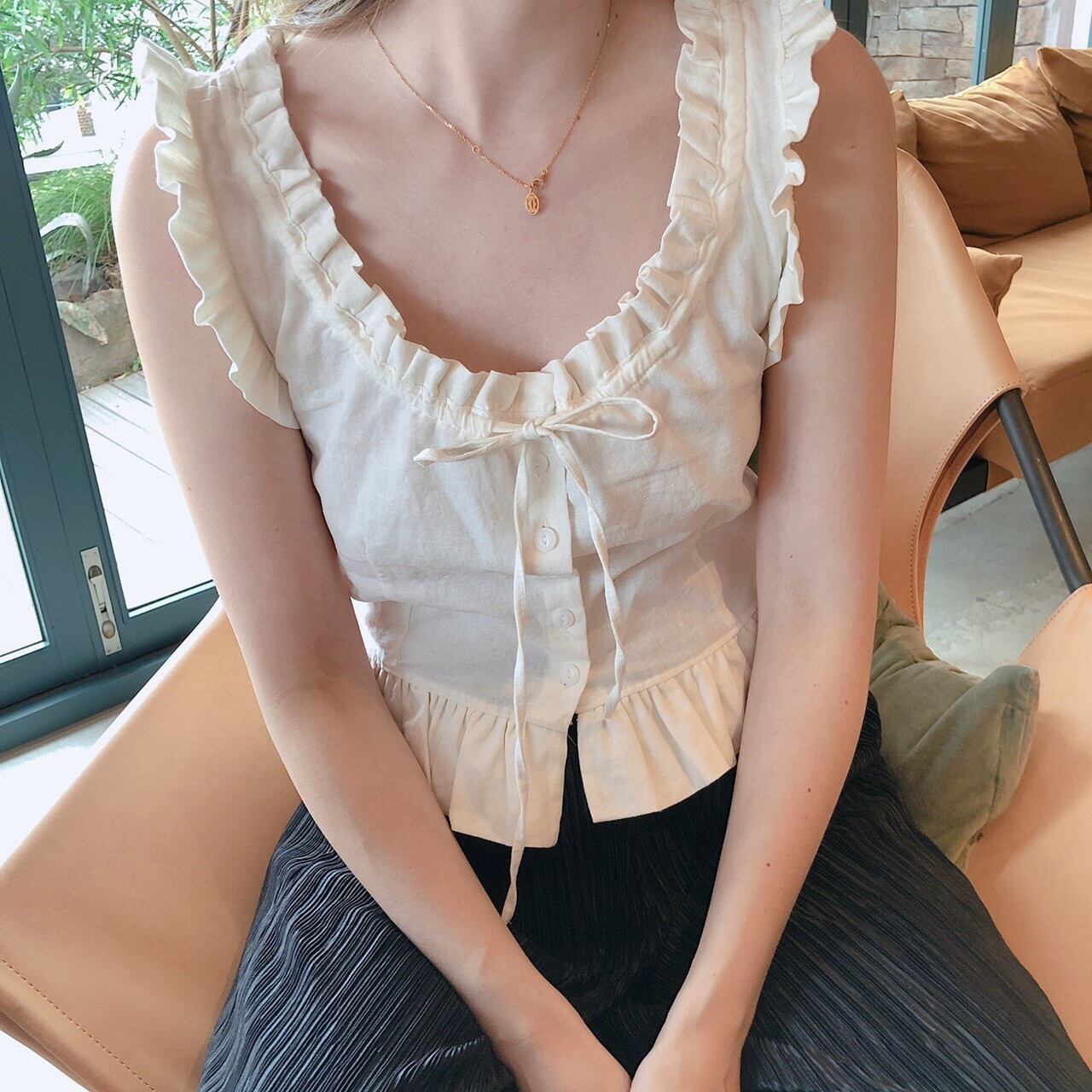 ショルダー部分のフリルが大人可愛さを引き立たせてくれるブラウス。