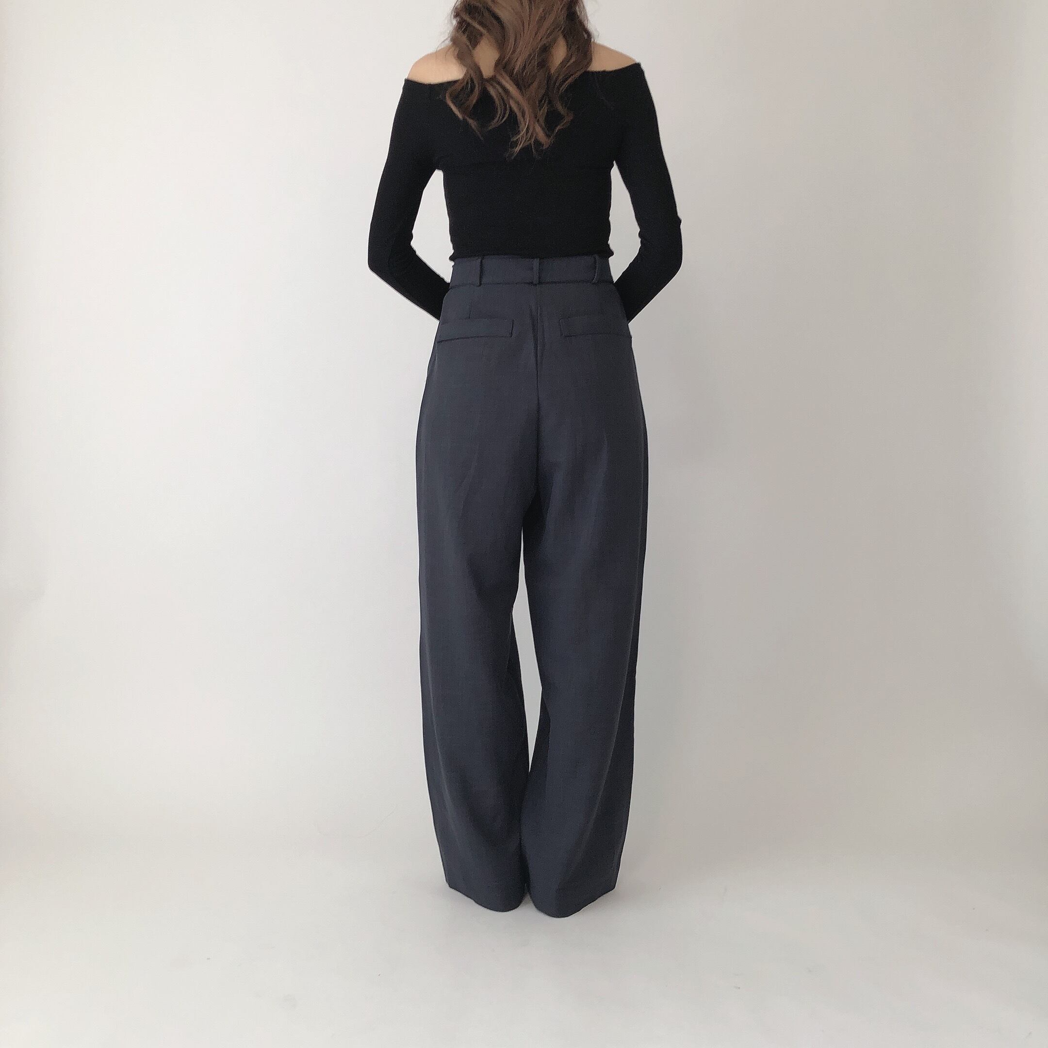 ゆるいサイズ感ですがタック入りでスッキリ見え、ハイウエストなので脚長効果も抜群です。