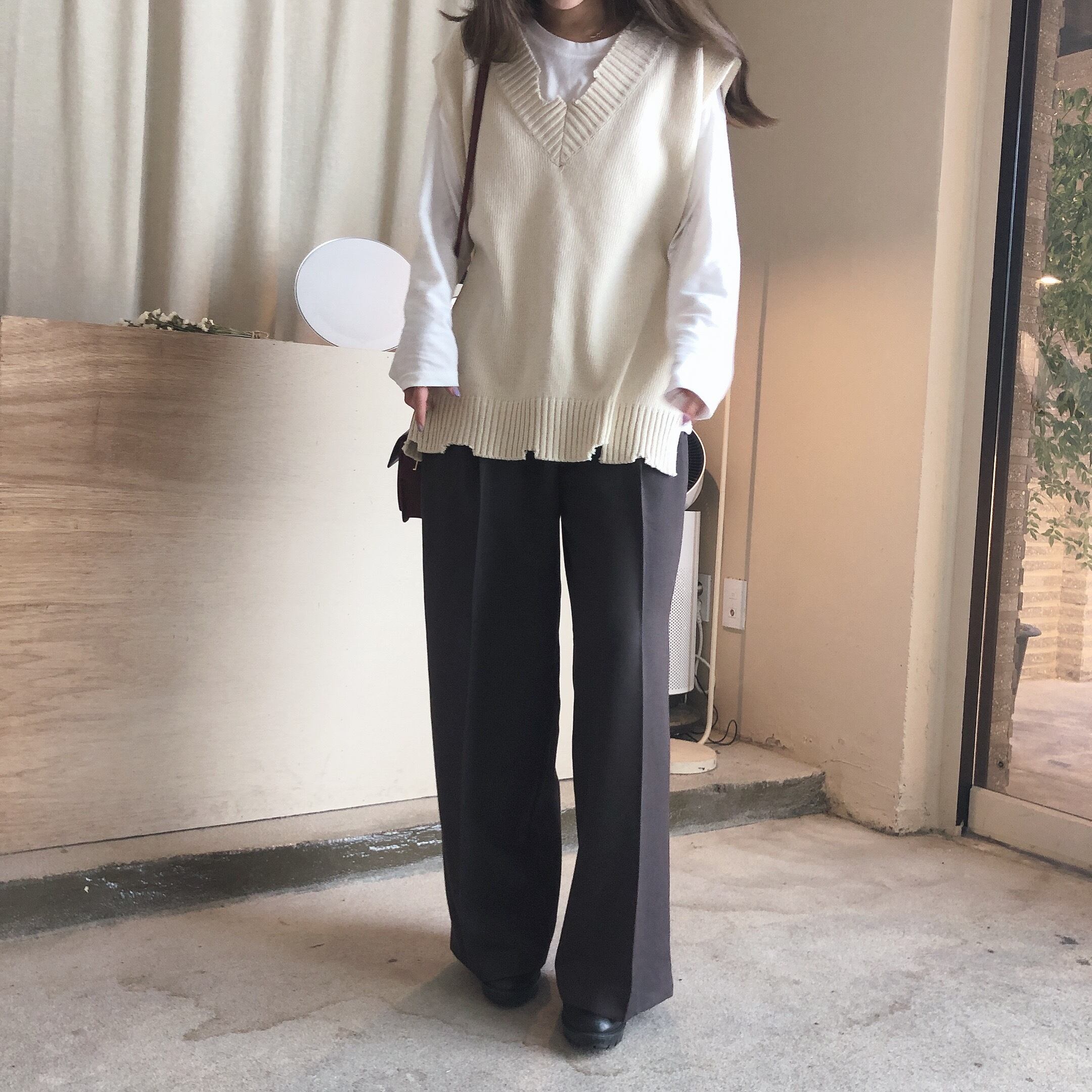 長めの着丈は、タックパンツやミニスカートとも相性◎