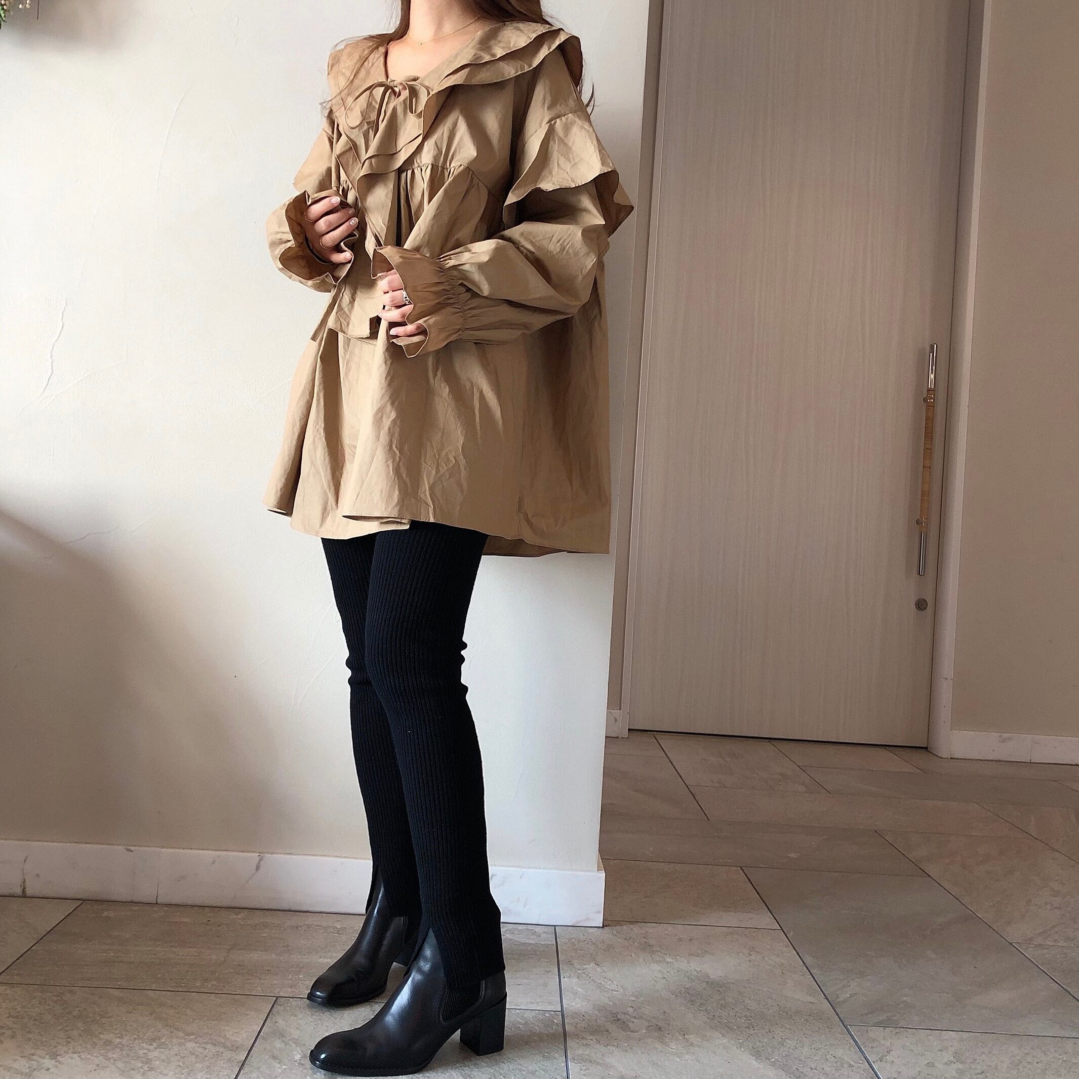 チュニック丈なので、トレンドのニットレギンスやスキニーパンツと合わせても◎.