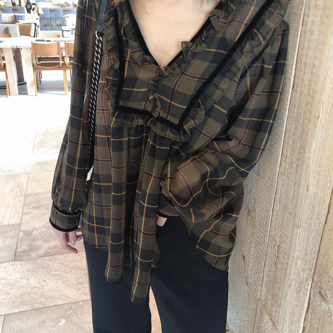 Check blouse /khaki (11月下旬頃発送予定)