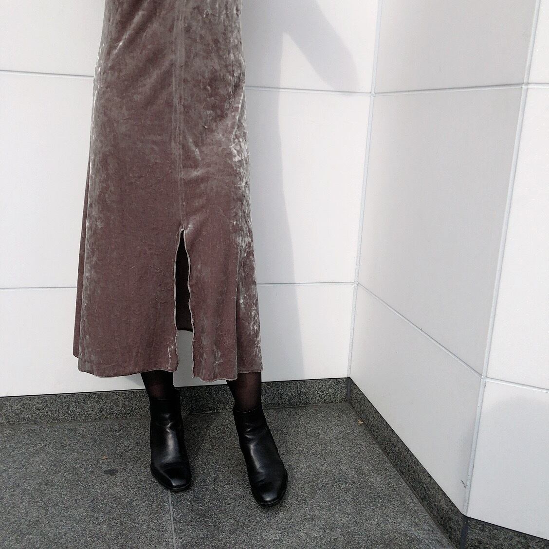 センターにスリットが入ってるため、ロングブーツや、ニットレギンス、パンツなどレイヤードも楽しんで頂けます。