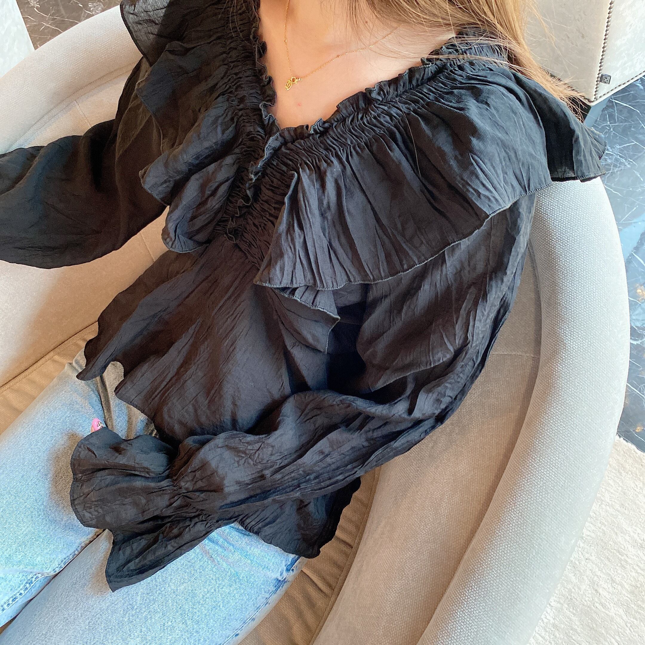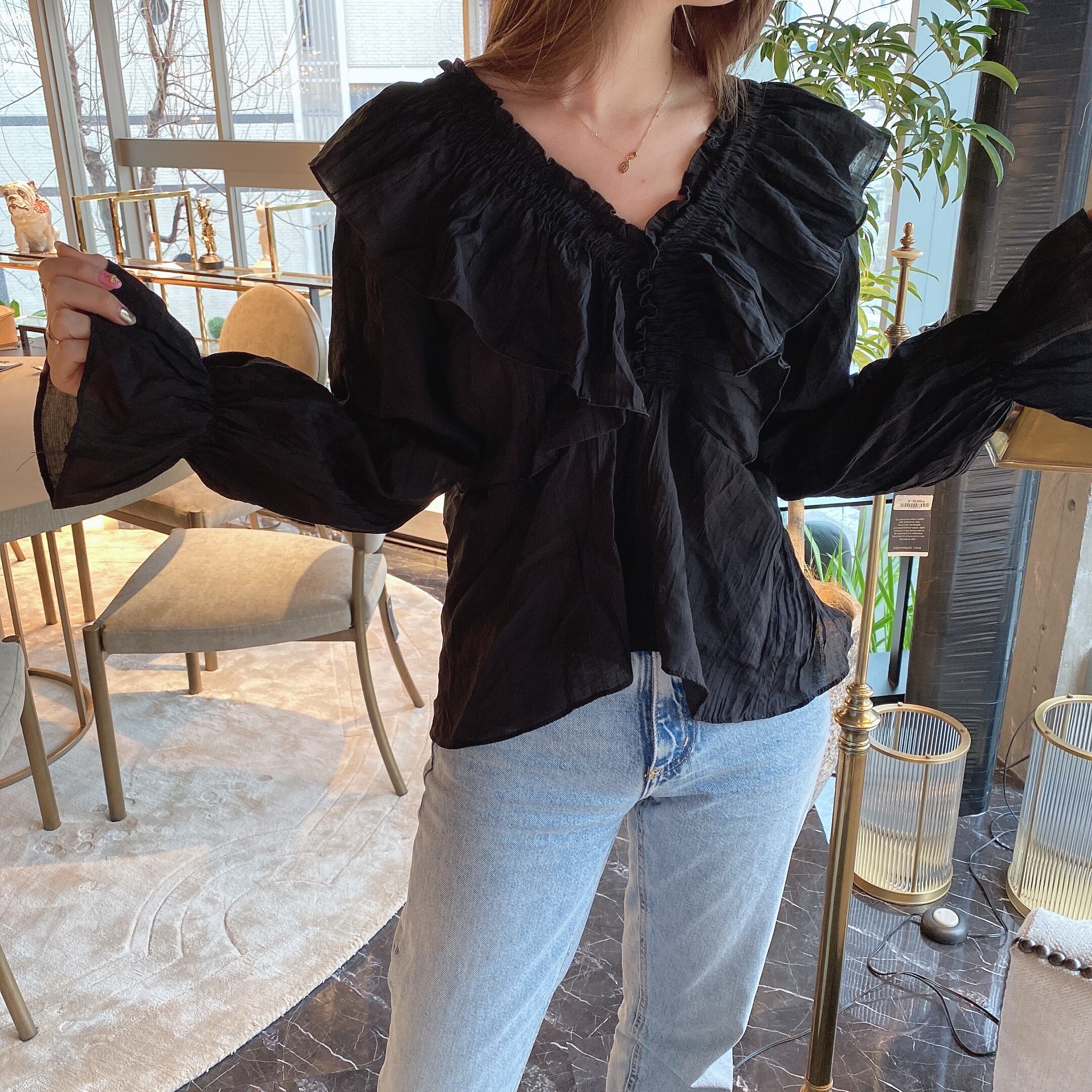 Crinkle blouse /black (3月下旬頃発送予定)