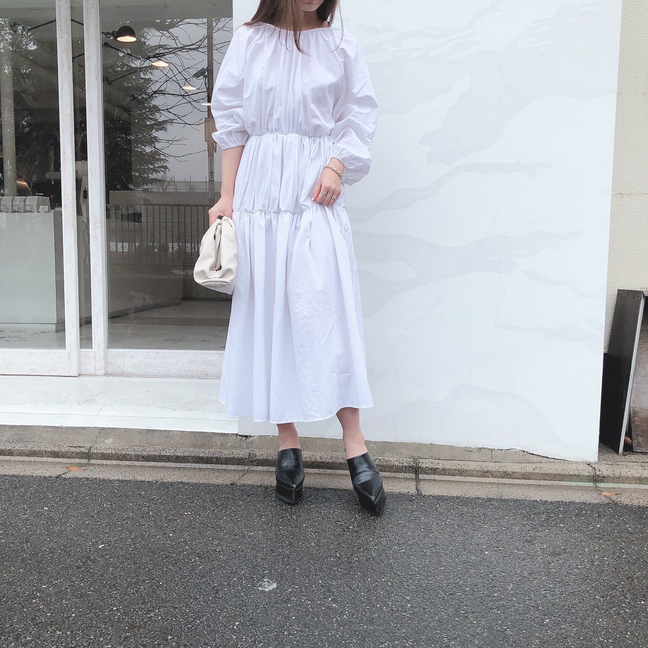 Back ribbon gather dress / white(3月下旬頃発送予定)