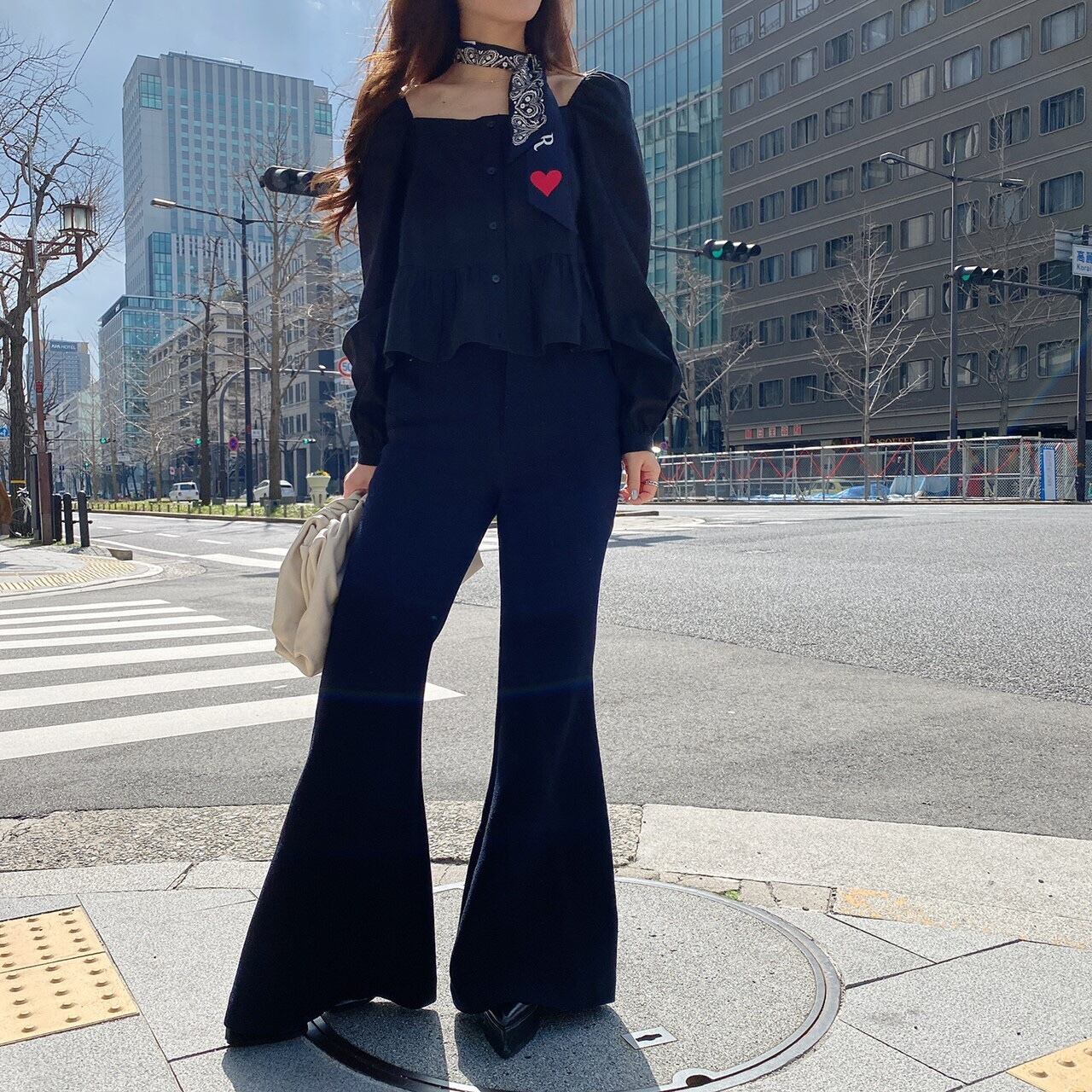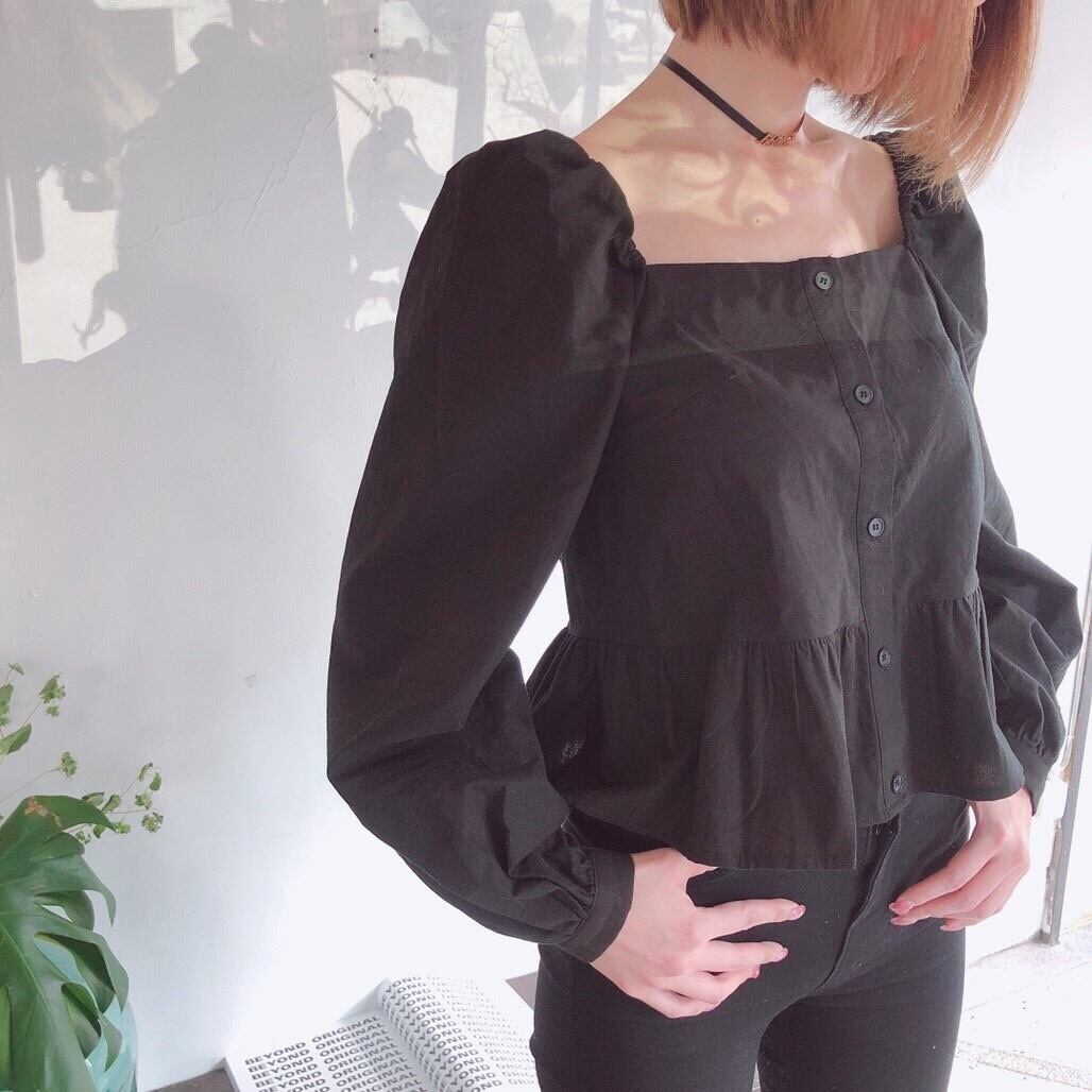 Puff shoulder blouse / black(3月下旬頃発送予定)