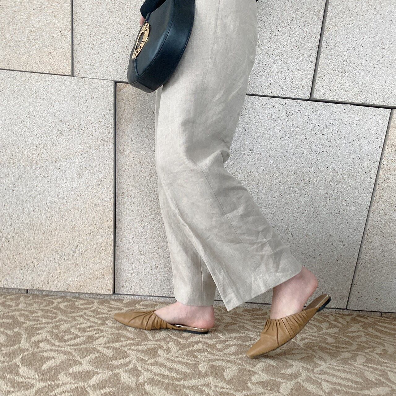 センタープレスで縦のラインを強調し、リネン特有のパリっとした美しいシルエットを実現。