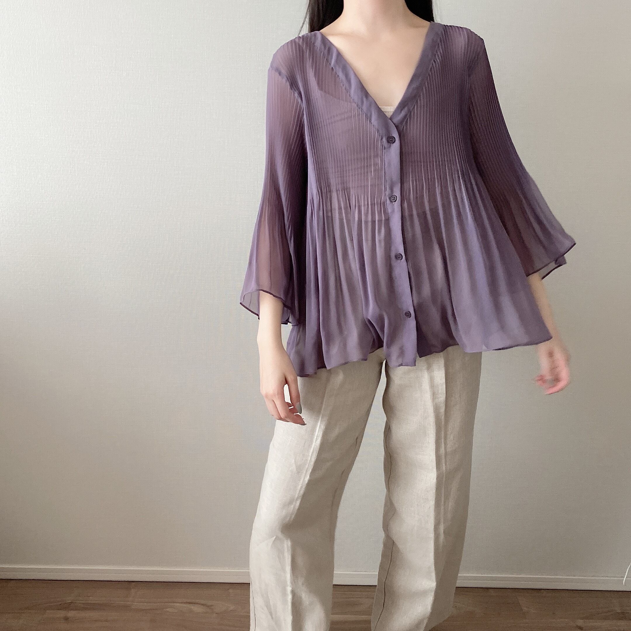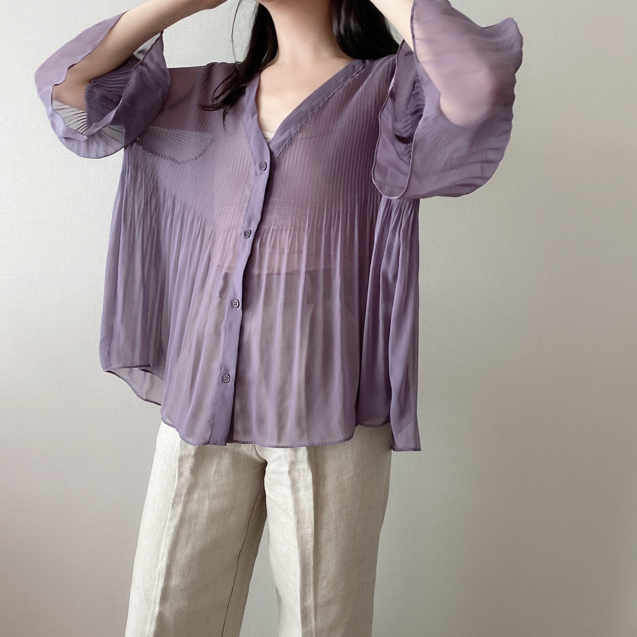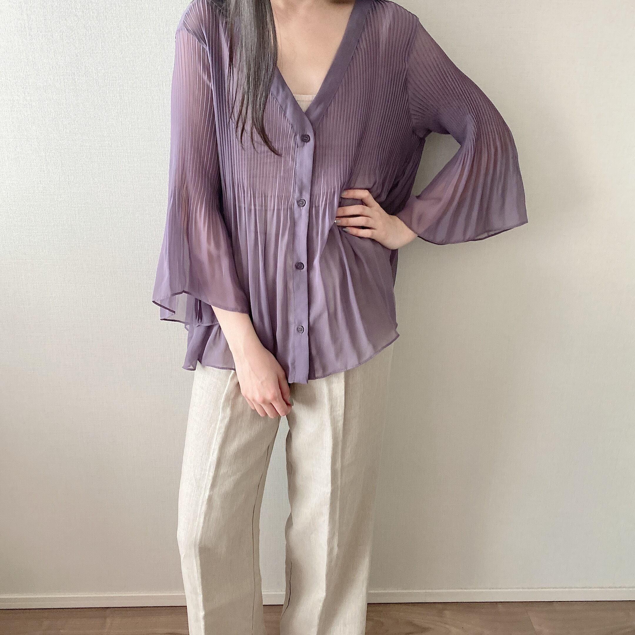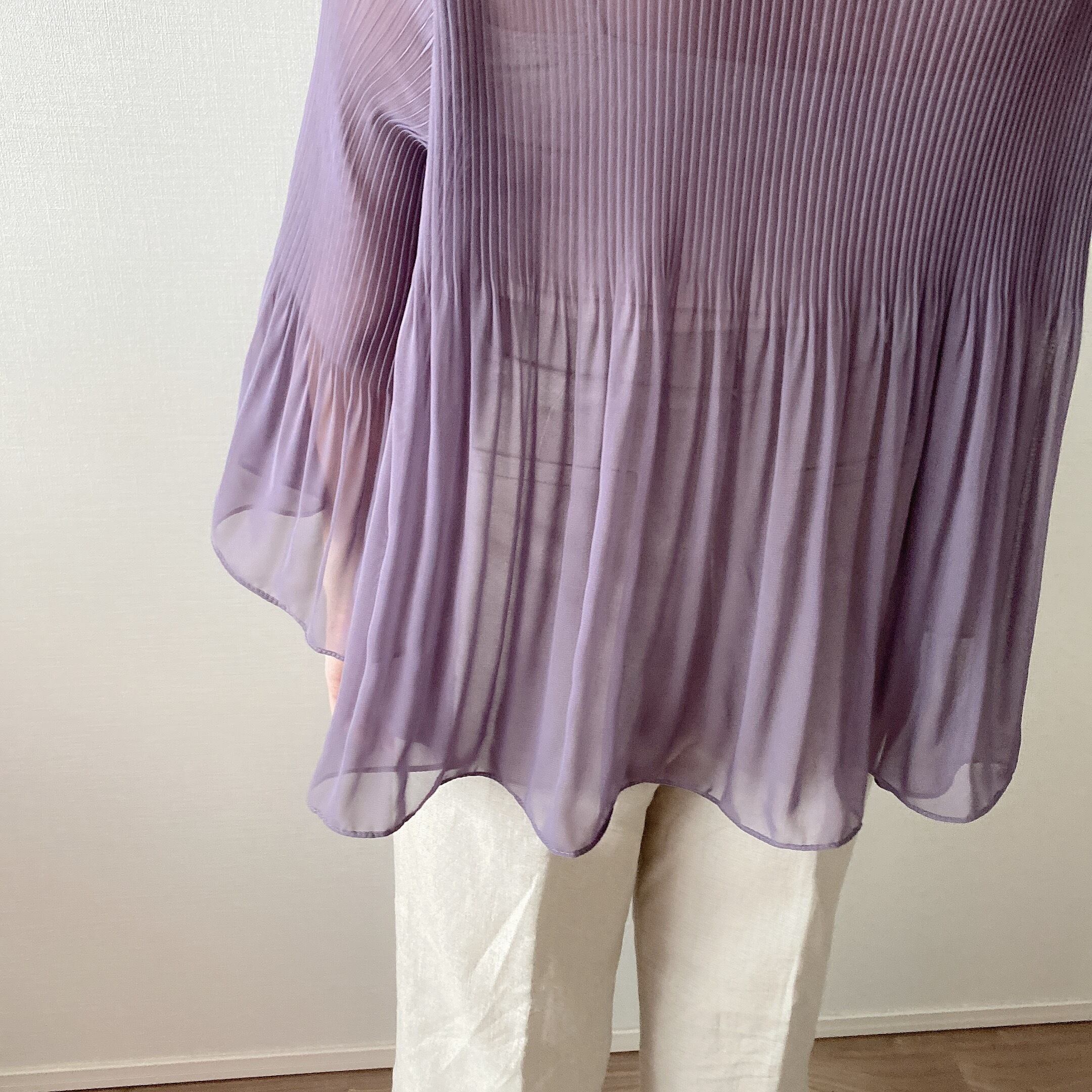 裾や袖が動くたびにふわっとなびいて可愛いプリーツブラウス。