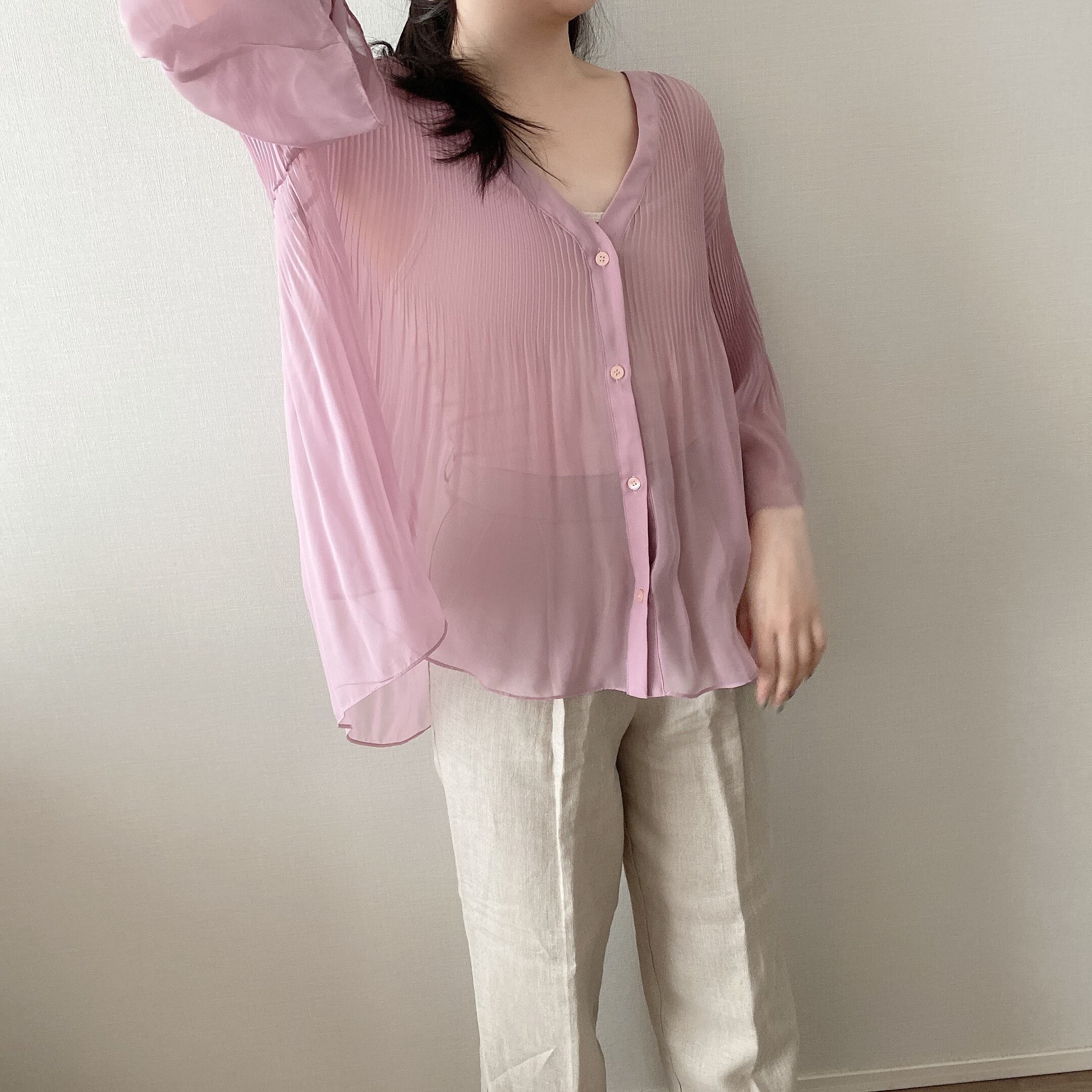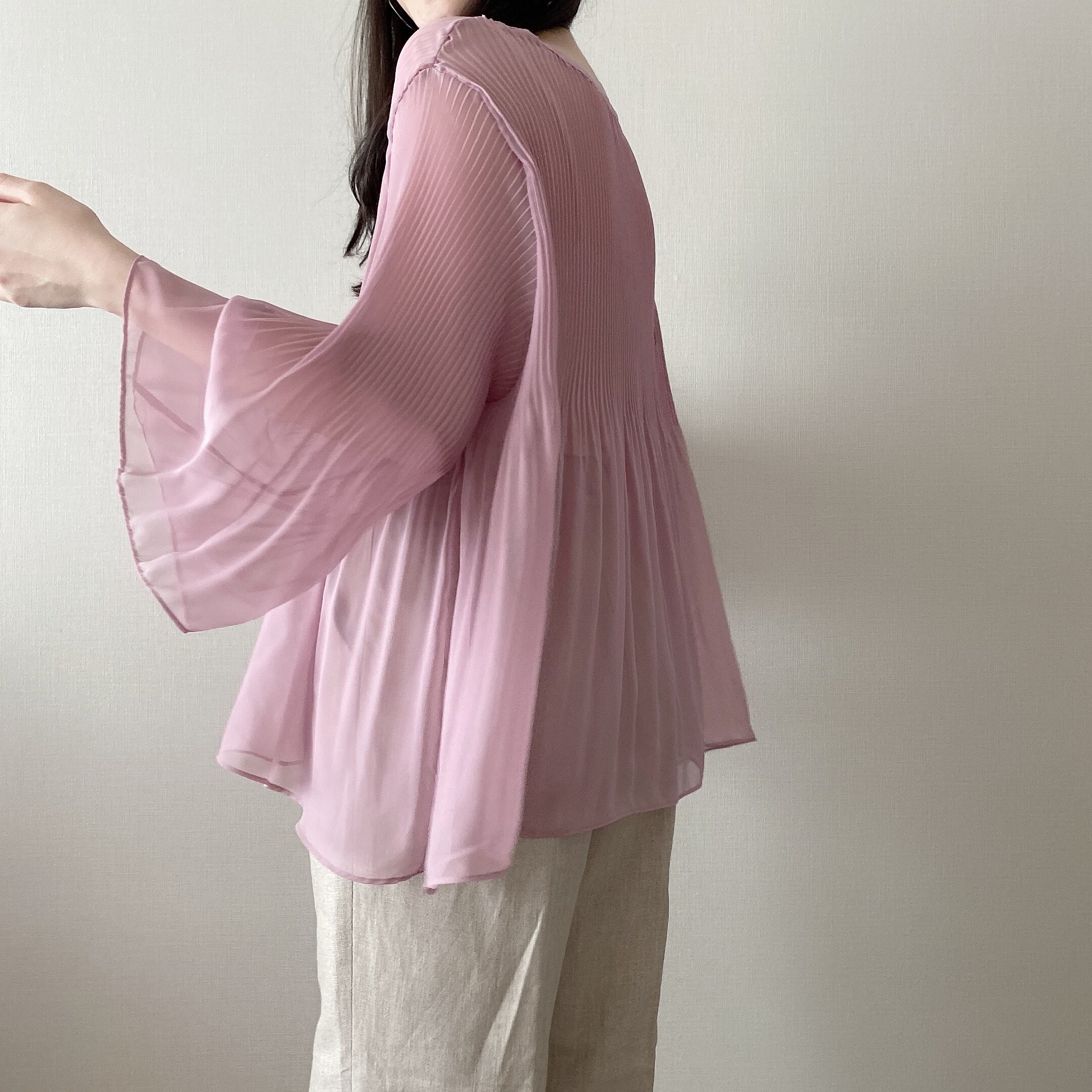 裾や袖が動くたびにふわっとなびいて可愛いプリーツブラウス。