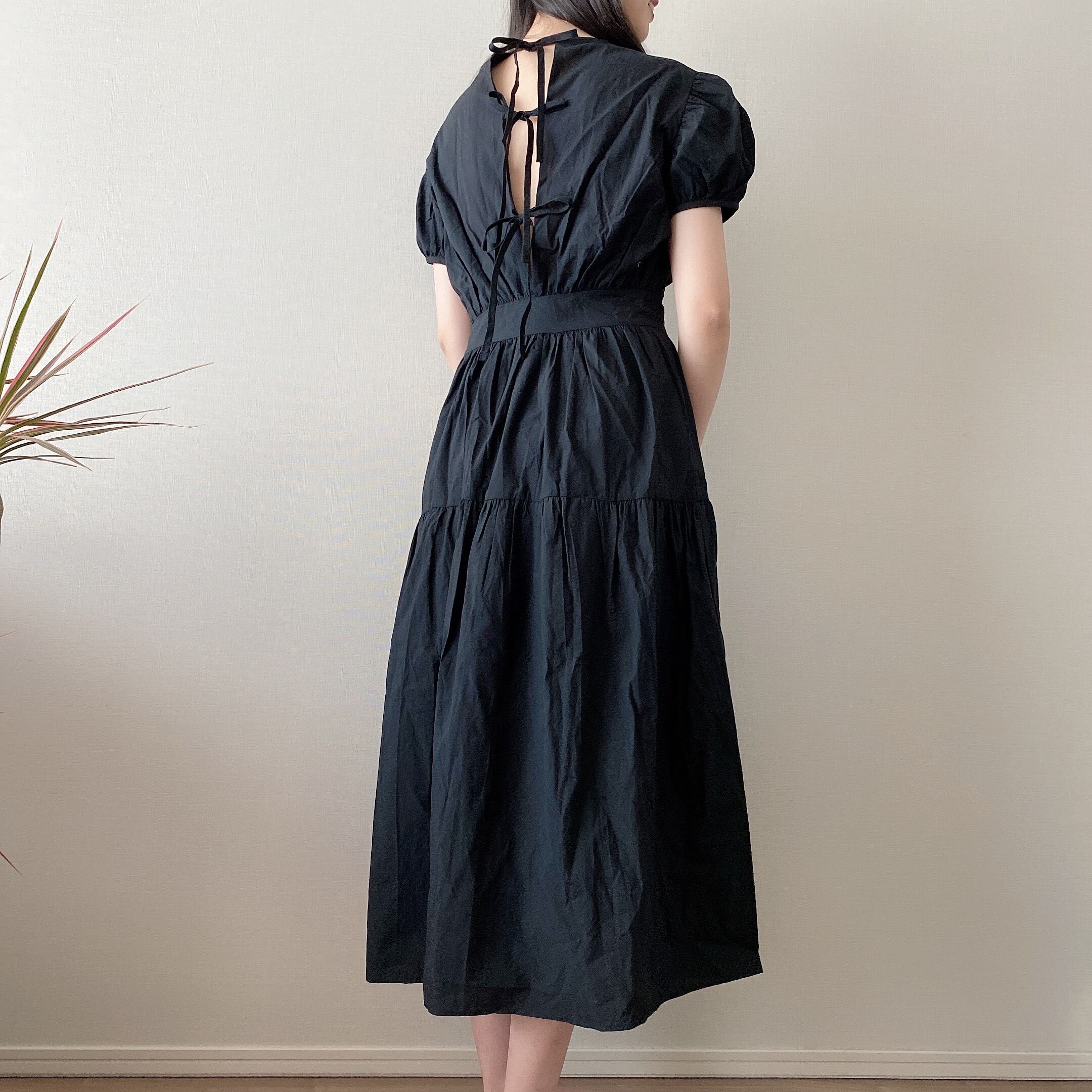 女性らしいフレアシルエットと袖のパフスリーブもとってもキュート。