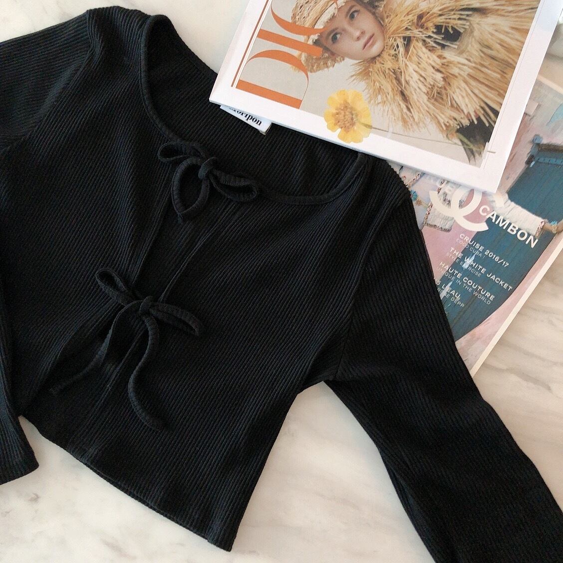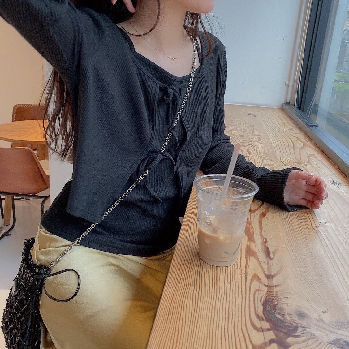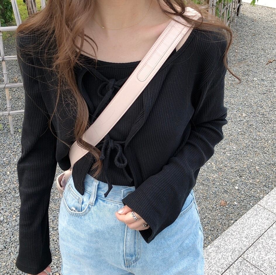 Ribbon cardigan & cami set / black(6月中旬頃発送予定)