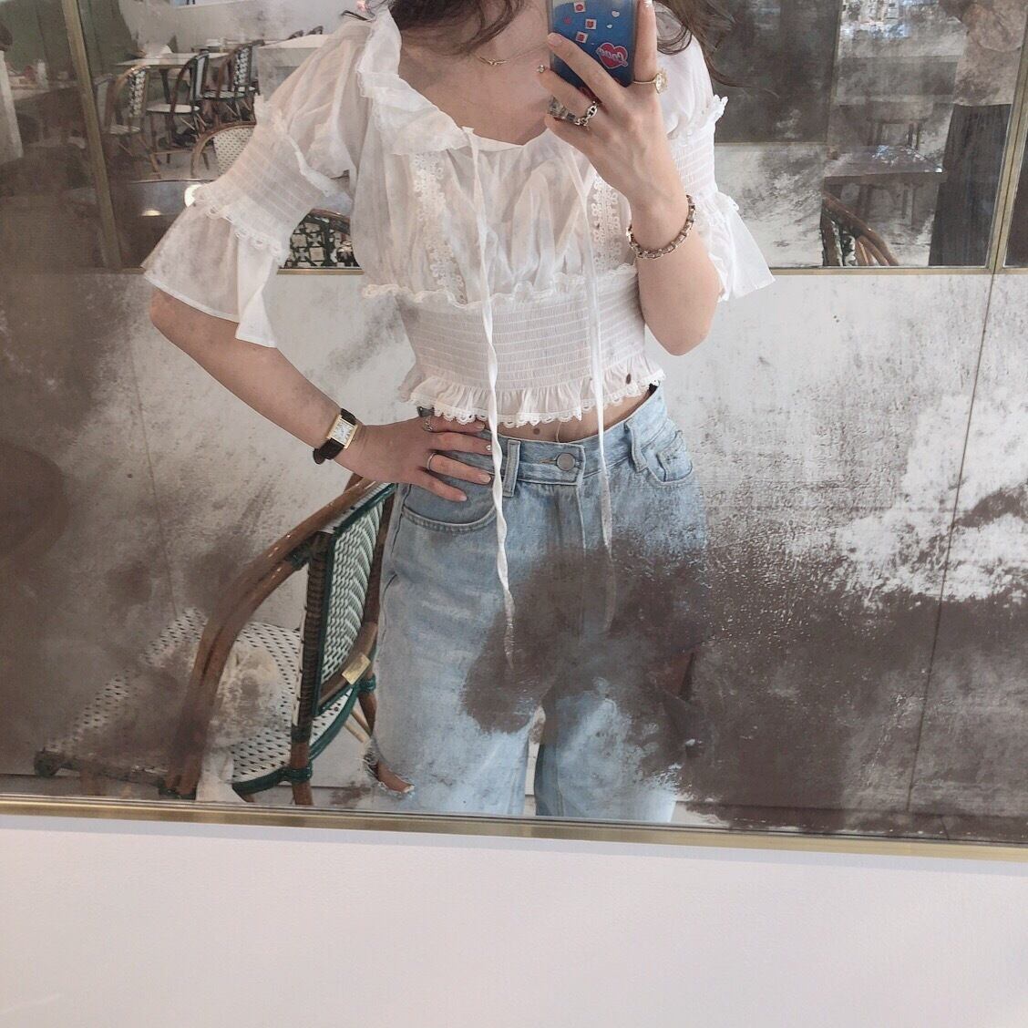 コンパクトな丈感なのでハイウエストボトムスとの相性が抜群です。