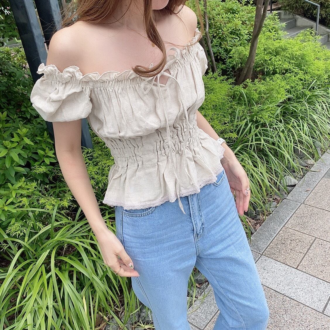 Linen puff blouse / Beige(7月中旬頃発送予定)