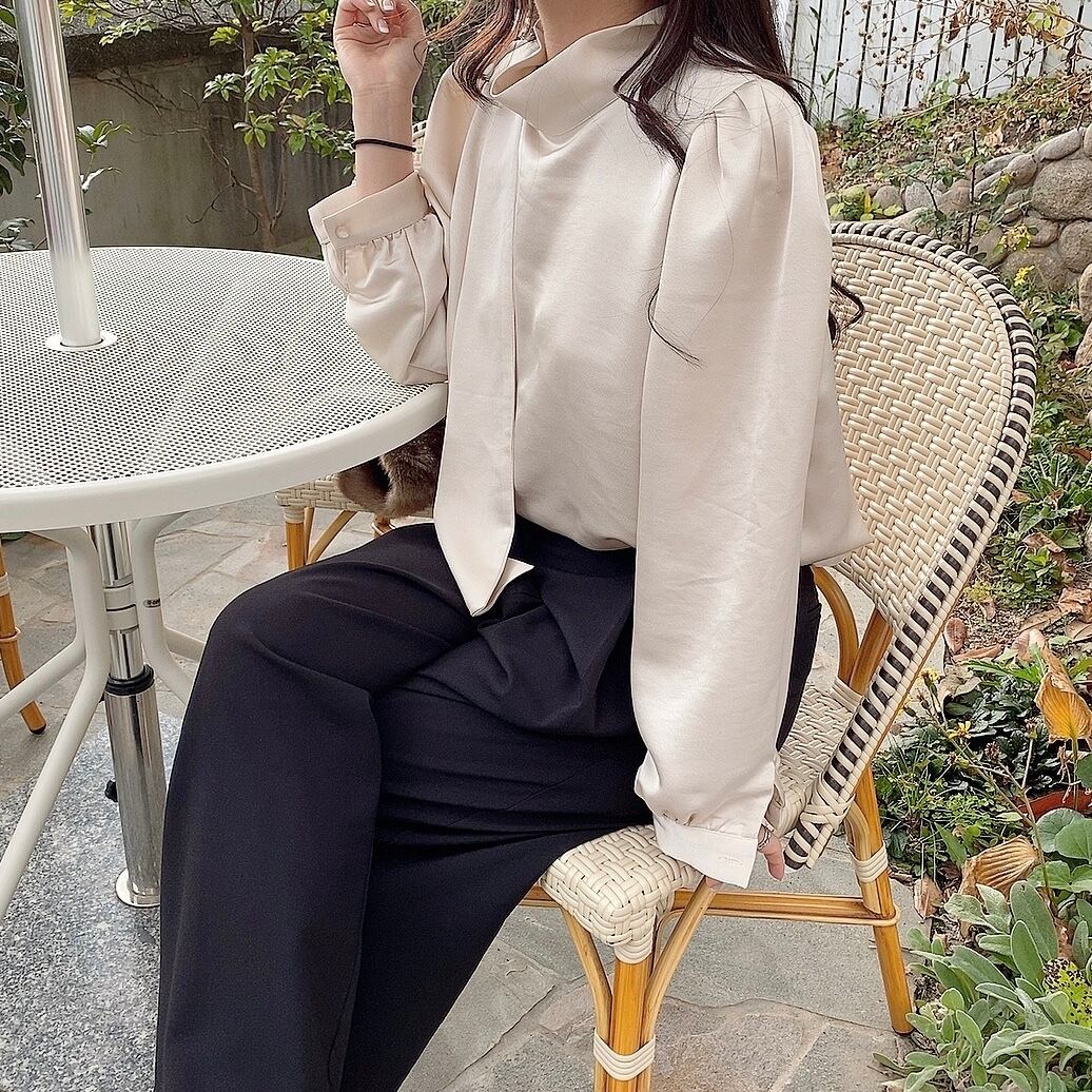 タイはルーズに垂らしたり後ろに結んだり、違った印象を楽しんで頂けます。