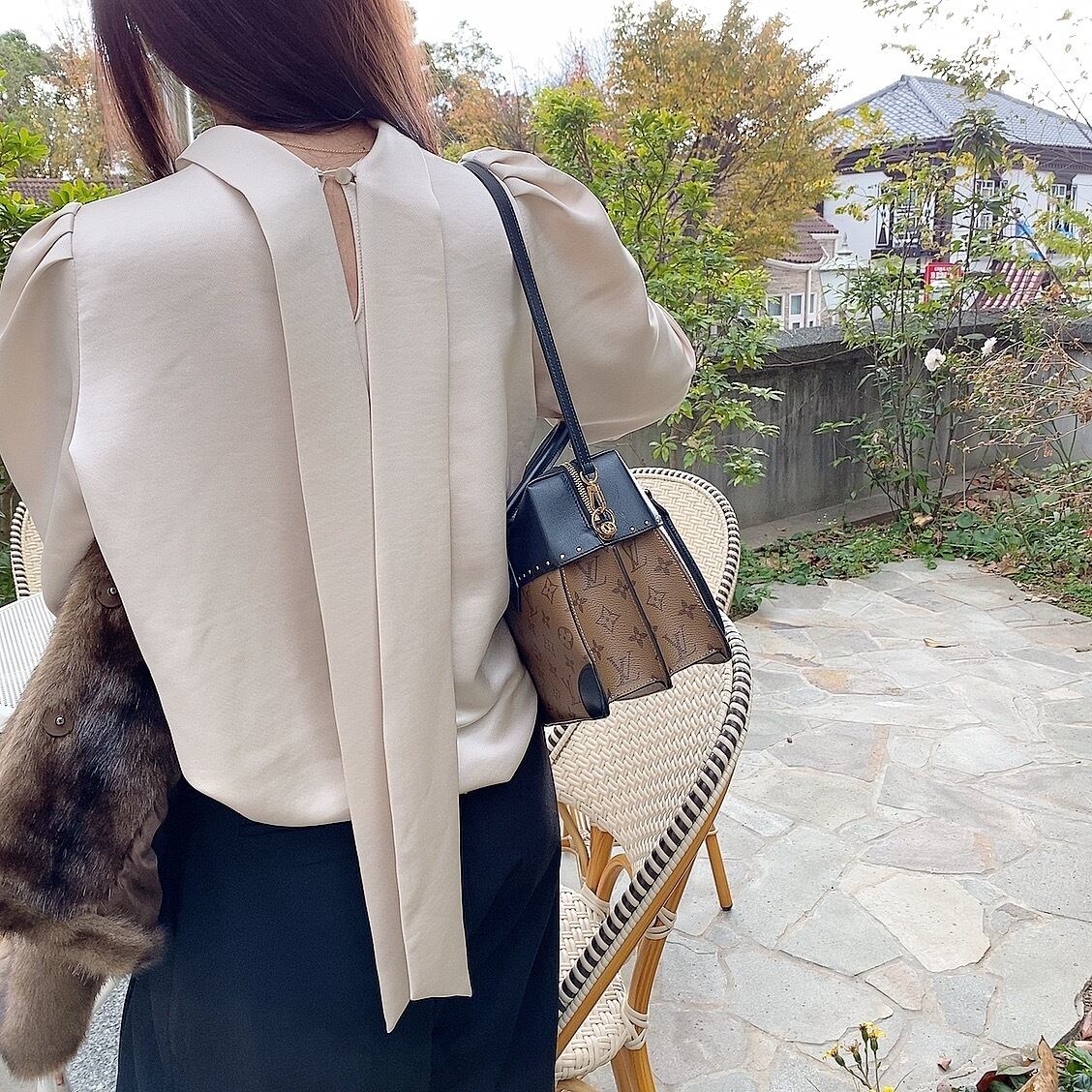 ショルダーラインはぽわんと広がるパフスリーブとなっており、レディで華やかな印象に。